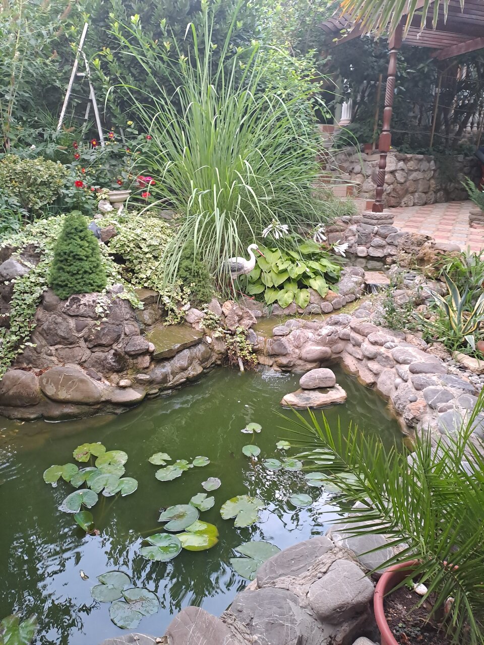 - Уютная веранда, беседка, фонтан, пруд с черепашками и рыбками.