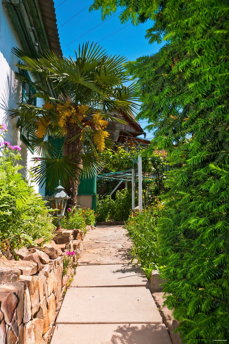 Замечательный гостевой дом. Чистота и порядок. Необыкновенный зелёный двор. А какие цветы в нем… Хозяйка Светлана чудесный, открытый человек. Впервые за 10 лет посещения различных курортных мест Крыма, появилось желание вернуться сюда на следующий год. До моря спокойным шагом с детьми — не более 10 минут. Магазины тоже рядом. Купить можно всё — овощи, фрукты, мясо, хлеб, молочные продукты, полуфабрикаты. Пляж — галька, море чистое, тёплое. На набережной есть несколько кафе.