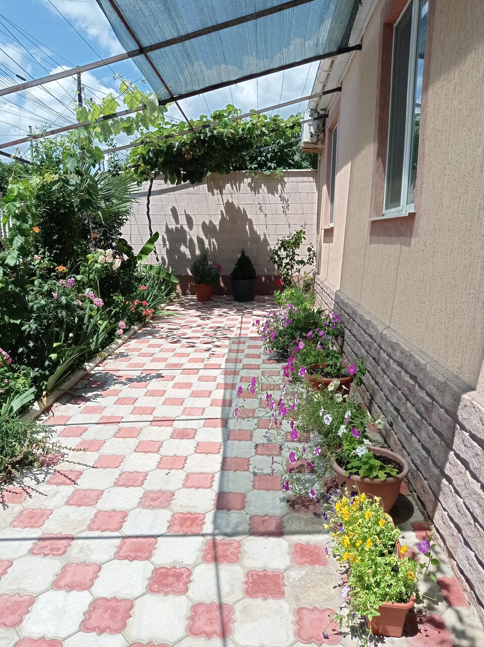 - Красивый двор с цветами, виноградом, киви и инжиром.