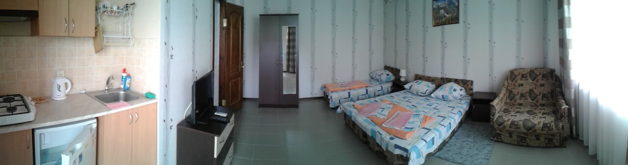 Рекомендую всем, хозяева приветливые, номера чистые, уютные, есть терасса со столиком, в номере все удобства, двор весь в цветах, растёт киви, инжир. Есть в номере мини кухня, так же во дворе общая кухня. Имеется мангальная зона. В 10-15 мин море, рядом магазинчики и рыночек. Тихо и спокойно, для семейного отдыха самое оно.