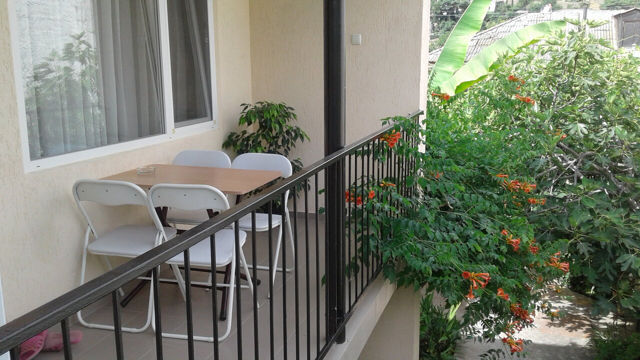 - Чистые, уютные и просторные номера.; Широкие балконы/терассы со столиками.; Наличие мини-кухни, общей кухни и мангальной зоны.; Близость к морю (7–15 минут пешком).; Кондиционеры, кабельное ТВ, холодильник, плитка.