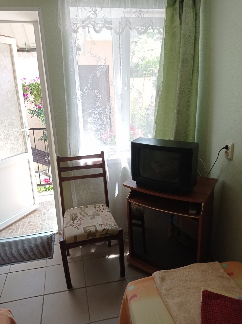 Отдыхали у Татьяны в начале июня. Тихий тенистый дворик прикрытый от солнца виноградом и киви. Номер просторный с душем и туалетом. Есть холодильник, плитка с необходимым набором посуды. Широкий балкон со столом и креслами. Есть места для парковки машин. Рядом тенистый парк с вековыми деревьями. На море есть общественный пляж и ‘ дикий’ .