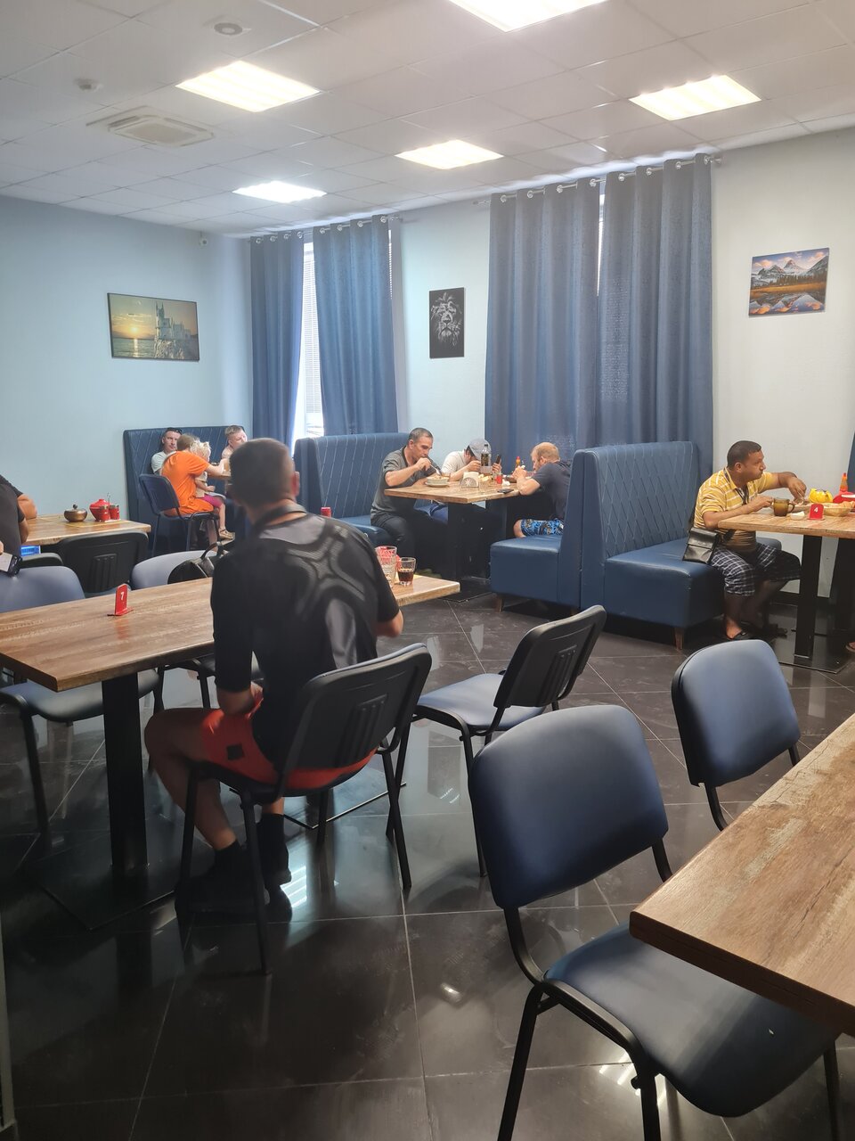 Вкусно кормят. Грязно в самом помещении. Много водителей-кавказцев.
