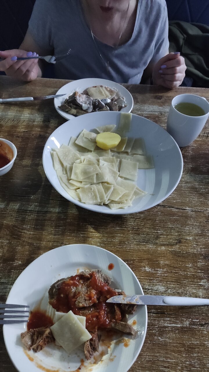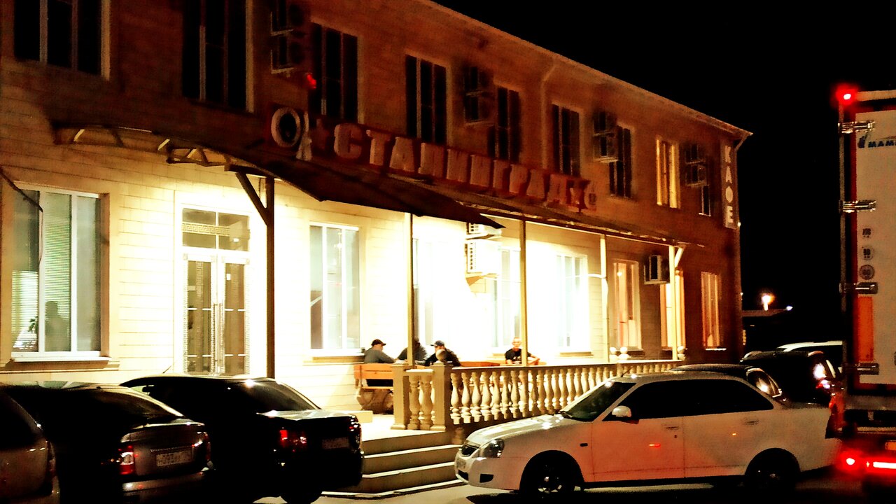 В моей Номер без изысков, но чистый, бельём и горячим душем — самое то, чтоб переночевать. В кафе еда вкусная, ждали подачи минут 15, что для меня приемлимо.