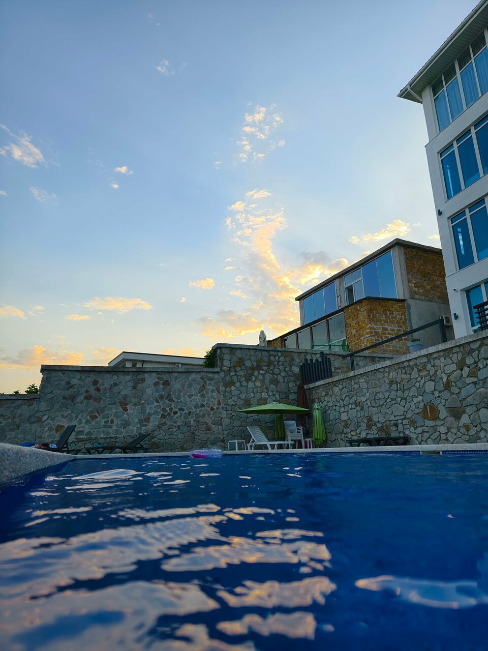 Место супер, хозяева максимально приятные люди. Ремонт в апартаментах 5 баллов, виды шикарные, бассейн холодный но в жаркий день самое то
