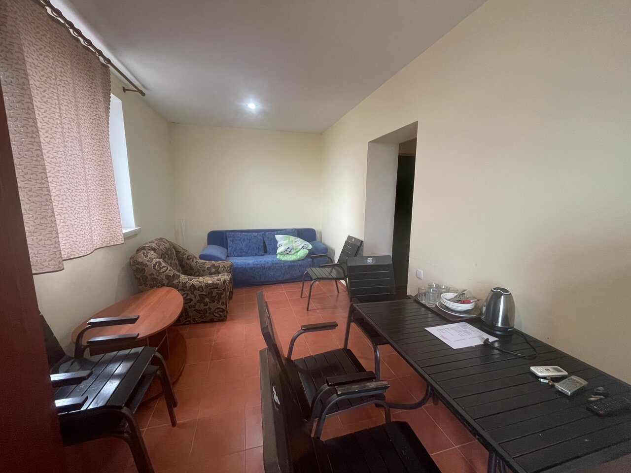 Отдыхали вчетвером, жили в двухкомнатном номере с видом на море, до него идти 8-10 минут. Всё необходимое есть в наличии (холодильник в номере, кондиционер, телевизор, общая кухня для приготовления пищи, посуда), в пешей доступности рынок, магазины. Очень приветливый и радушный управляющий. Приедем ещё)