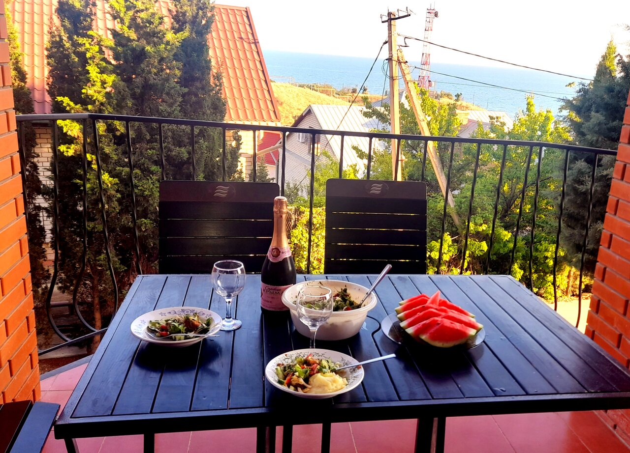 Шикарное место с потрясающим видом на море и село Морское! Парковка для гостей и удобное, эргономичное расположение номеров. Есть возможность как самостоятельно готовить на кухне, так и заказывать питание.