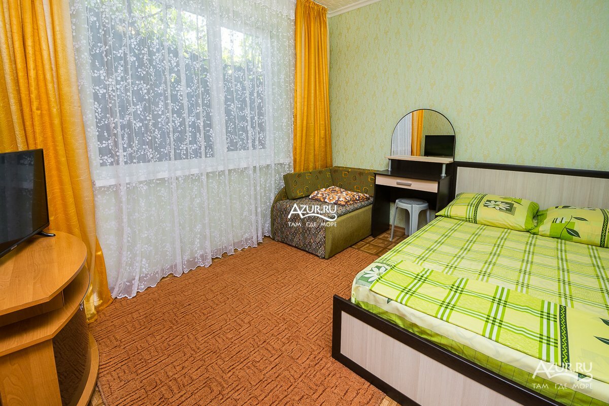 Две комнаты у каждой отдельный вход, с общим двориком и кухней.Мебель: односпальная или две двуспальных кровати, диван,два шкафаКомнат: 2Кухня: индивидуальна у номераСанузел: индивидуальный у номера