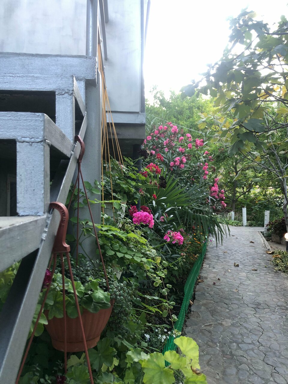 В номере уютно, на территории растут гранаты, виноград, инжир… Вот его точно можно было рвать, мы часто с сыном перекусывали им)) Есть мангал, песочница… Очень удобно. Расстояние до моря для нас оказалось идеальным, путь к нему лежит через шумный рынок, суета которого для нас была далёкой.