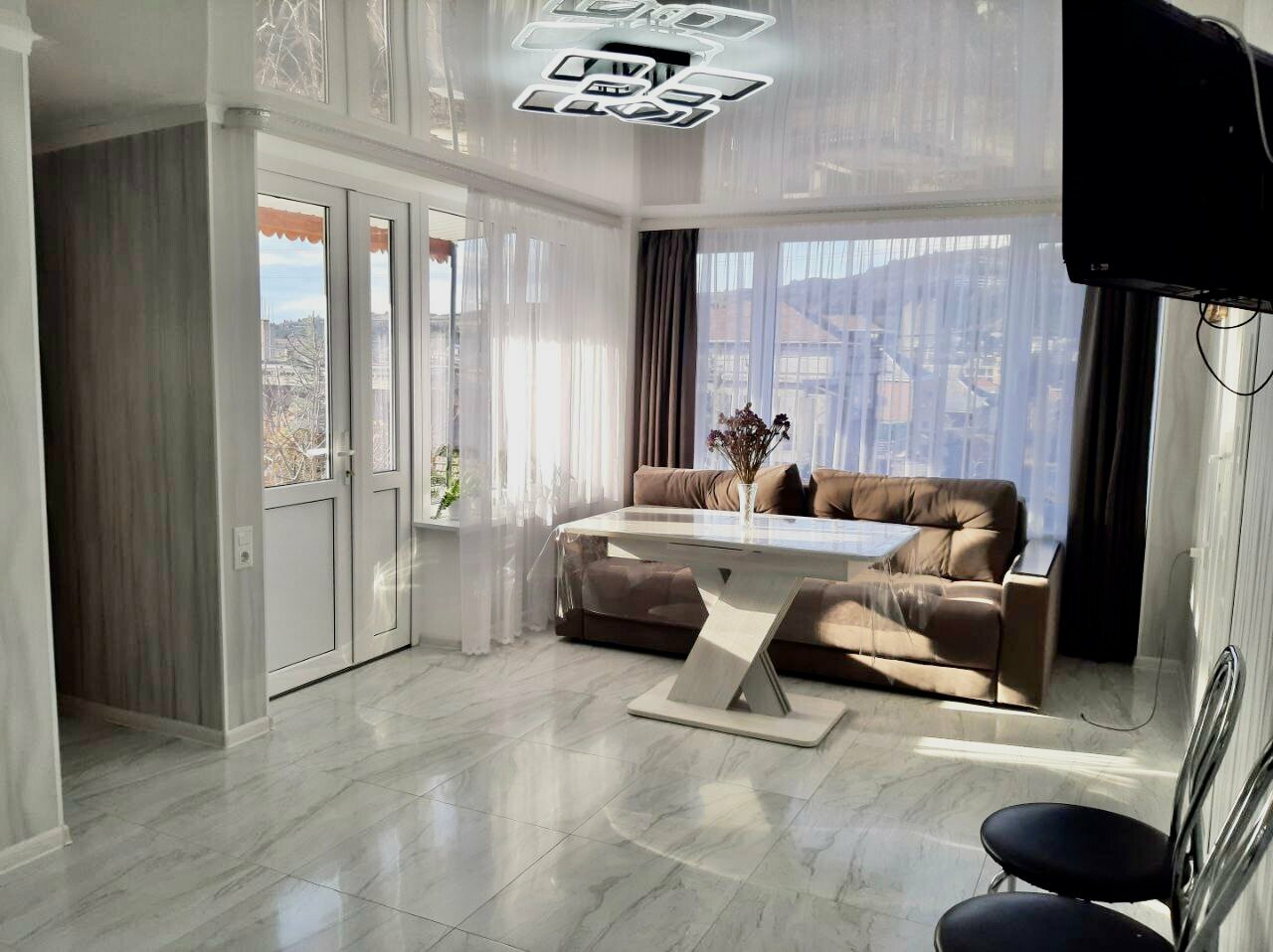 Хозяйка приветливая. Все показала рассказала. Решили остаться на отдых. С балкона вид на море и на горы. Во дворе виноград, гранаты расстут. Цена за номер доступная