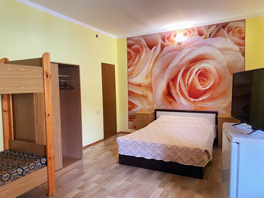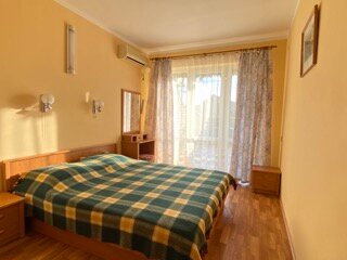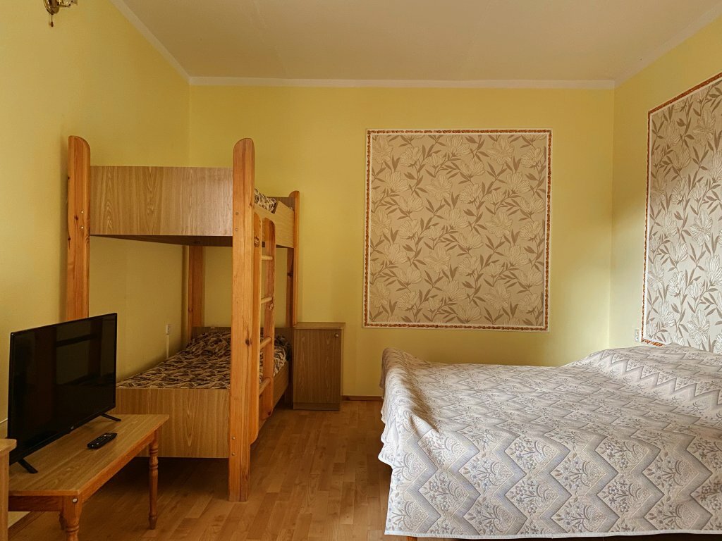 Отличное место для семейного отдыха. Приехали двумя семьями (8 человек), заселились в один номер, детям очень не хотелось расставаться. Единственное что плохо в этом номере, так это то что он находится на последнем 4 этаже. Взяли номер с завтраками, завтраки очень вкусные! Персонал приветливый и доброжелательный. На территории есть бассейн и тренажёрный зал (снаряды немного потрепанные, но для обычной тренировки вполне хватает). На территории растёт много фруктовых деревьев и кустарников.