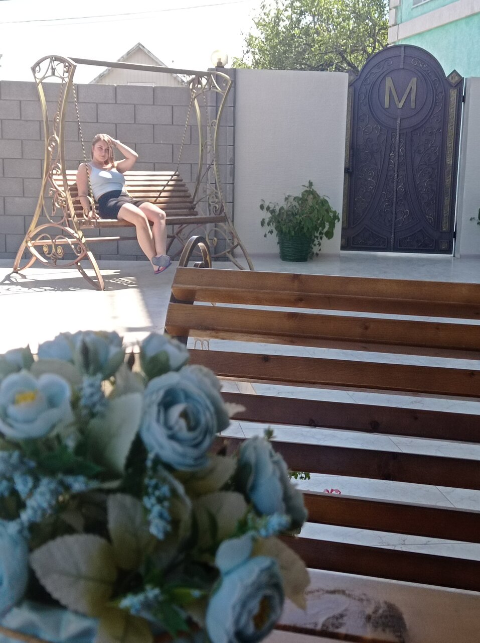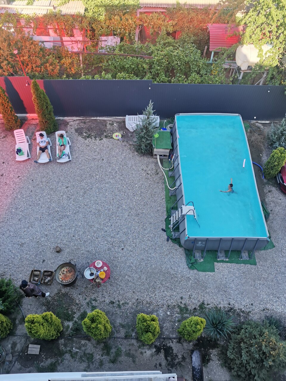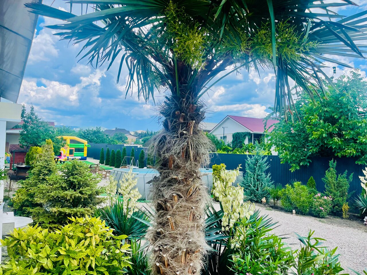 - Бассейн и качели на территории.