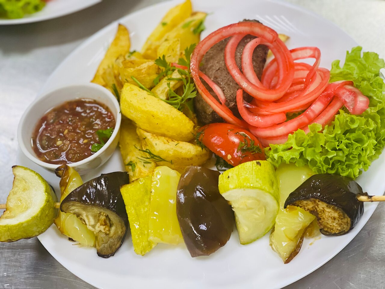 - Большие порции в ресторане.