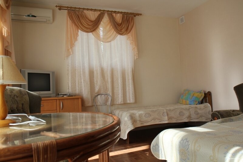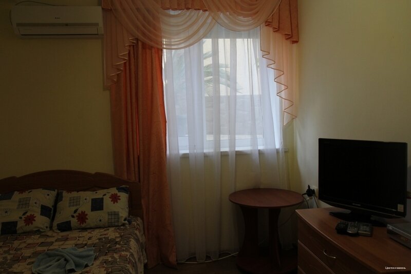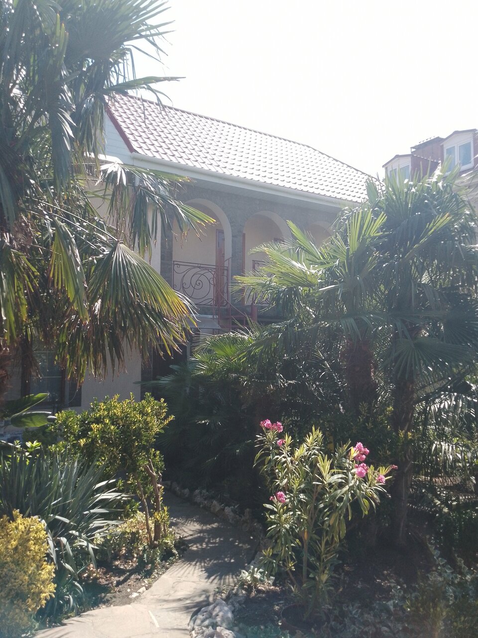 Только 5 звёзд этой гостинице. Если вам нужен тихий, спокойный отдых, то вам сюда. В номерах все есть. Есть общая кухня, если нужно приготовить. Номера разные, есть с балконом, есть с видом на море. Море, кстати, близко. А какой двор у этой гостиницы! Это же райский сад! Кстати, у хозяев можно приобрести экзотические растения, которые они сами выращивают. Мы намерены вернуться!