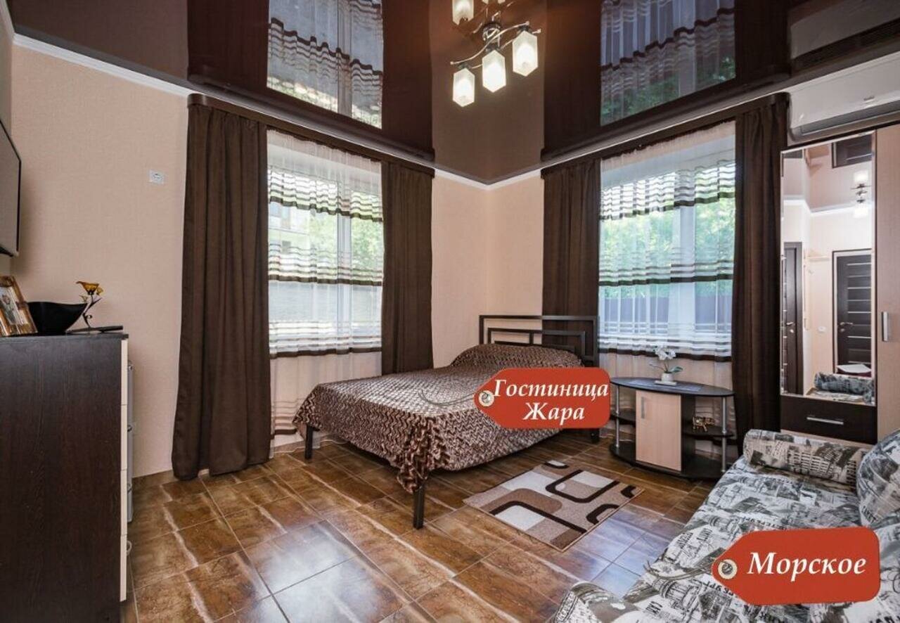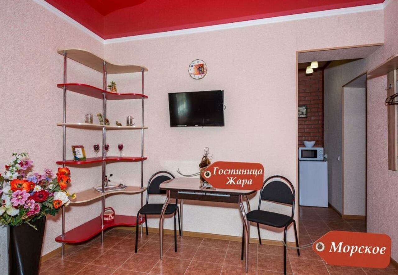 Гостиница «Жара» расположена в селе Морское на улице Карла Маркса, 19А, в 342 метрах от моря. Мини-отель открылся в 2018 году и работает круглосуточно. Гостям предлагают номера с кондиционером, звукоизоляцией, Wi-Fi, телевизором, холодильником и феном. Доступны общая кухня, посуда, чайник, микроволновка и плита.