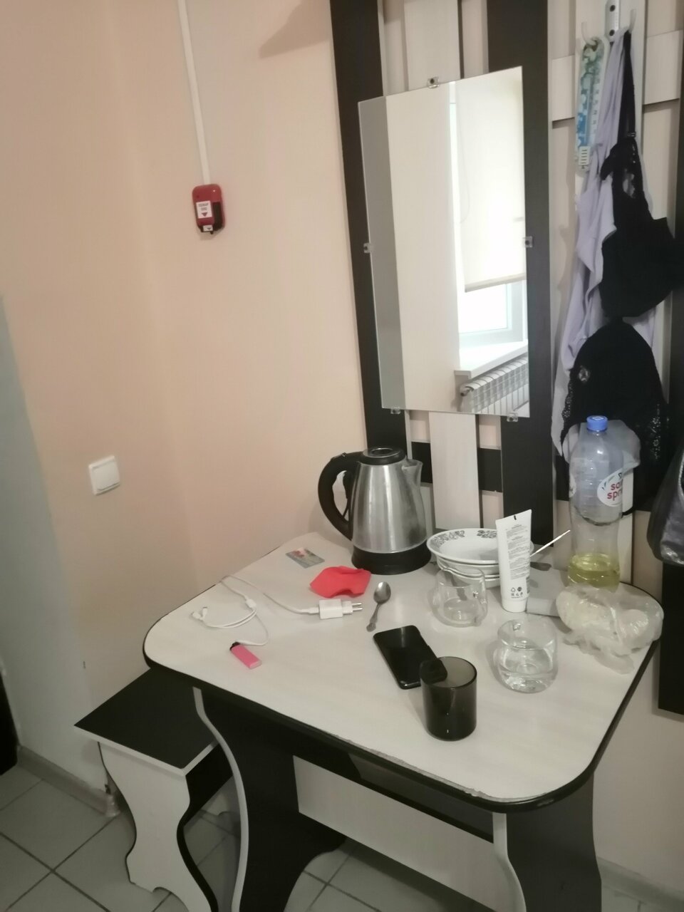 В номере точь в точь как на фото) чистенько, имеется ночник и электрический чайник, чай/кофе можно взять на ресепшене бесплатно, стоянка для авто бесплатно. Вот только пахло в номере не совсем приятно, видимо обрабатывали недавно.