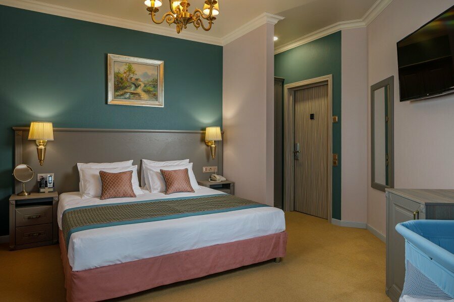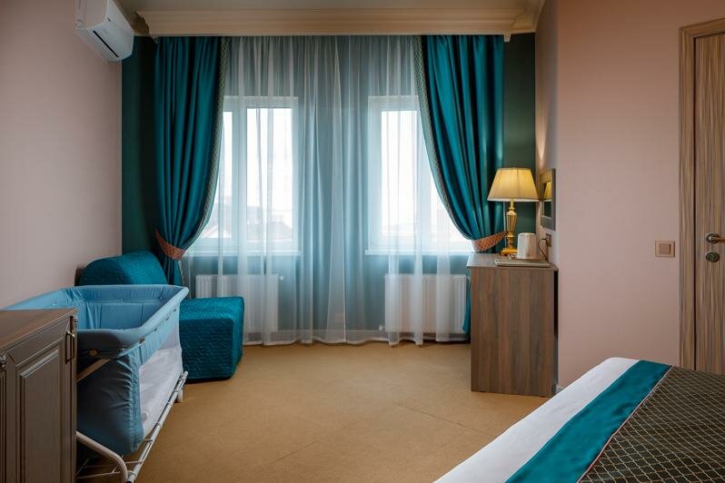 Современный однокомнатный номер категории «Комфорт» с оригинальной дизайнерской отделкой, подойдет для одно-, двух- или трёхместного размещения. Здесь будет комфортно как семейной паре с ребенком, так и гостям посетившим город по рабочим делам.