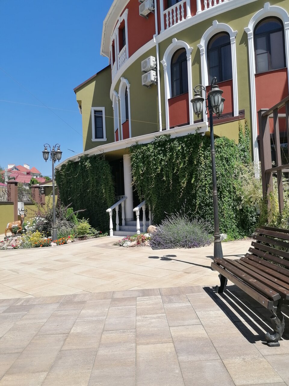 Были в этом отеле в сентябре 2022 года. Брали семейный номер, он полностью соответствует фото на сайте. Все очень чисто и уютно, ремонт свежий, внутри номера все продумано. Есть небольшое кафе. Мы завтракали по меню. Поскольку я не ем мясо, мне не хватило в меню на завтрак обычной яичницы без ничего. По меню она только с беконом или сосиской. Но это мелочь На небольшой территории есть детская площадка, беседка для отдыха, бассейн и зона барбекю. Все очень органично, и красиво. Парковка за забором под видеонаблюдение бесплатная. Возможно для людей с коляской будет неудобством отсутствие лифта, но нам это не мешало. Рядом в пешей доступности береговая линия, смотровая горы Мысхако и винодельня. Нам все очень понравилось