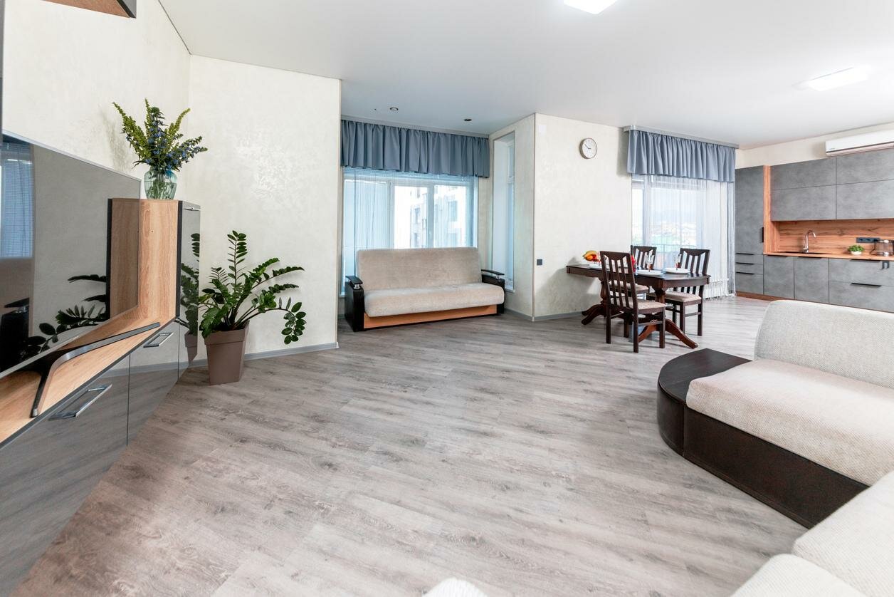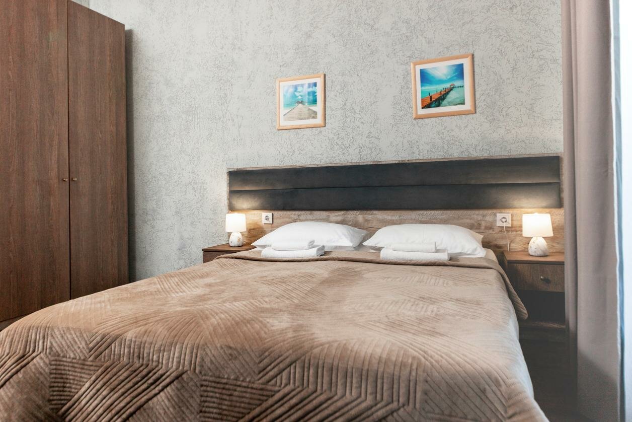 Номер категории 'Люкс' — это просторный двухкомнатный номер площадью 80 м², оформленный в классическом стиле. Он включает уютную спальню с большой кроватью King Size, а также просторную кухню-гостиную с двумя раскладывающимися диванами, что делает...