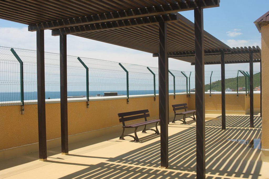 Гостиница находится на втором этаже дома. Близко от моря. Пешком 5 минут. Чистая территория, тихо, парковка как подземная, так и снаружи. Мы жили не в гостинице, а снимали квартиру в этом же доме. Нам очень понравилось.