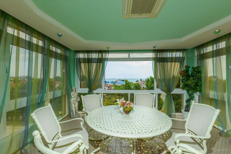 Гостевой дом очень хорошего уровня. Чистые большие номера, даже самый дешевый бюджетный номер просторный, с обеденной зоной и большим телевизором. Шкаф, комоды, тумбочки — разложить вещи непроблема. Полетенцев по 5 шт на 1 человека, отдельно полотенце для пляжа, удобная и идеально чистаная ванная комната. В доме есть кухня с досточным количеством хорошей новой посуды: ножи режут, варочная поверхность работает, все чистое и свежее. Сотрудники приветливые и отзывчивые, как в хороших отелях. Уборка проводится тщательно. Единственный минус — далековато от центрального пляжа и вида из окна нет, частный сектор. Но есть 3й и 4й этаж и от туда прекрасный вид На гору Колдун. После 5ти дней проживания ощущения, что это гостевой дом нет совсем — это маленький семейный отель!