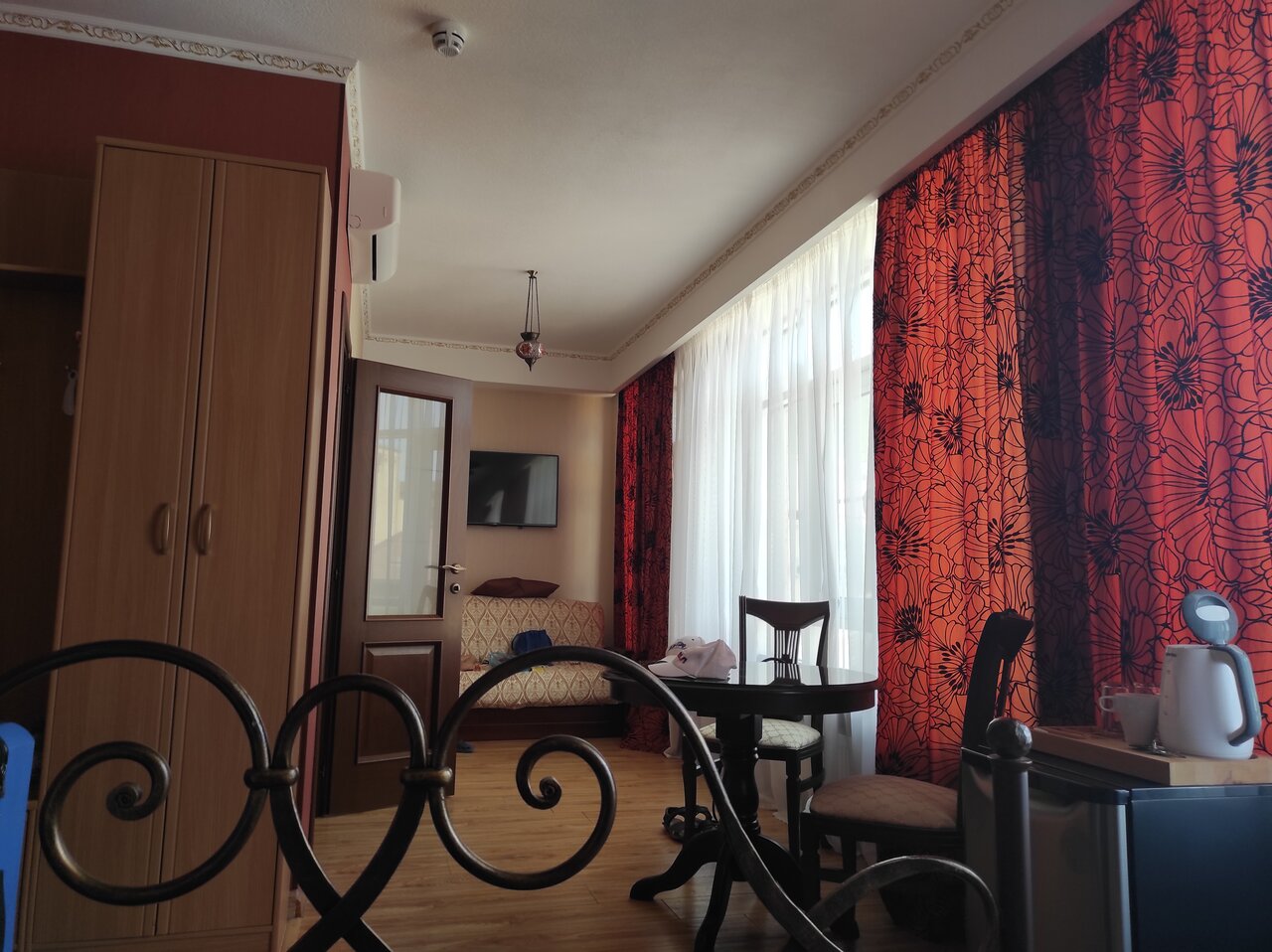 Очень красивый отель. Номера супер, чистенько, цена приемлемая. Уборка, смена белья и полотенец — все включено. Красивый уютный дворик, мангальные зоны оборудованные, бесплатная стоянка. Очень приятная хозяйка, вежливое обслуживание. Единственный минус нет- поблизости столовой. Центральный пляж 10 мин пешком, 3 мин на машине.