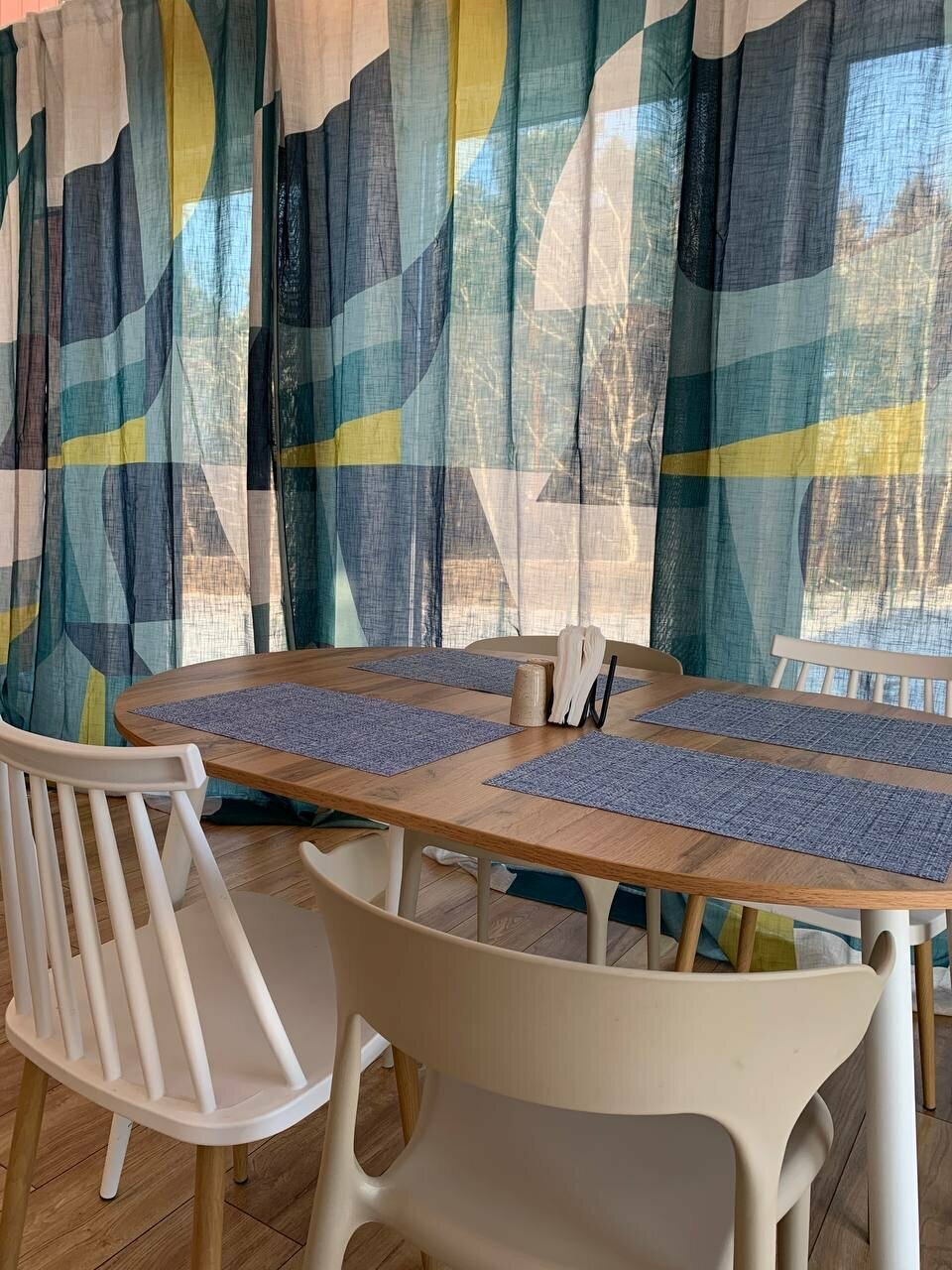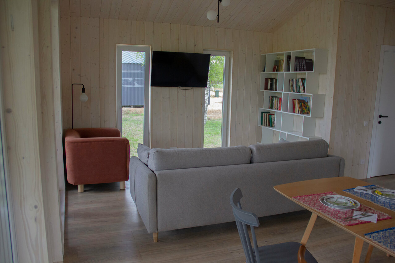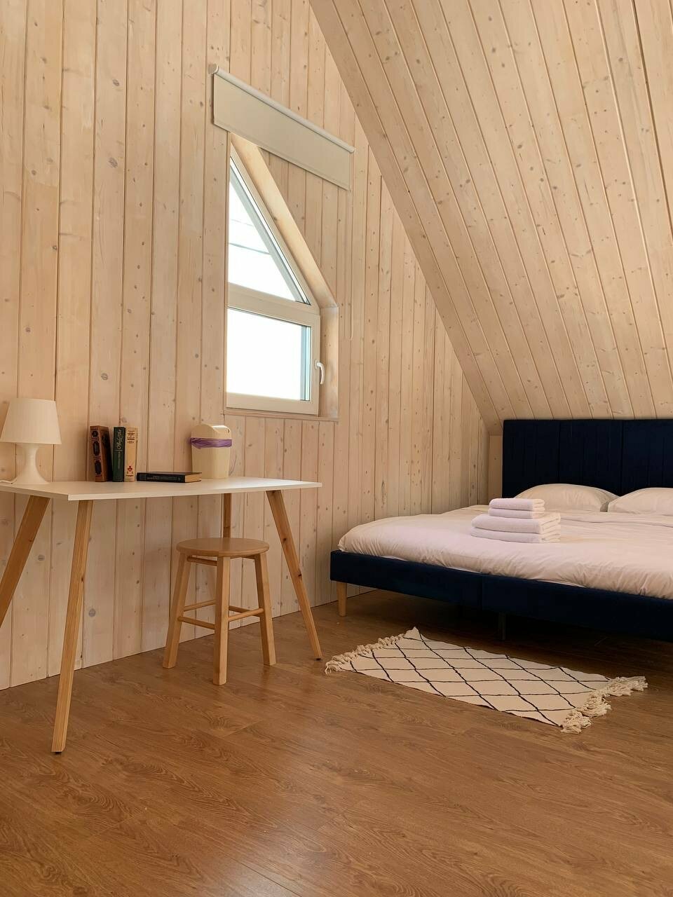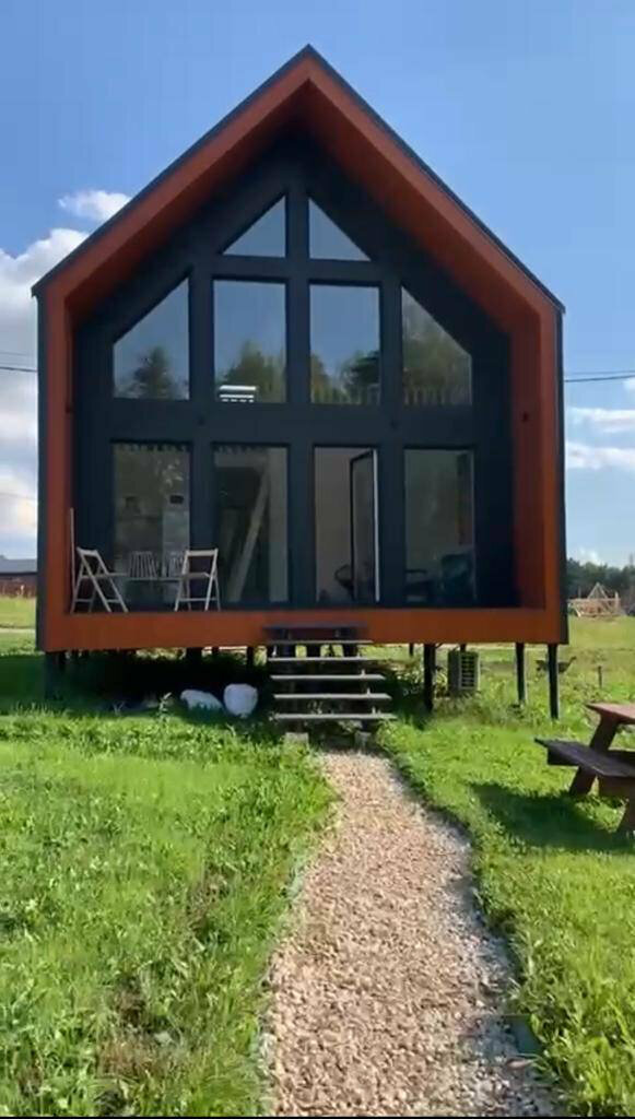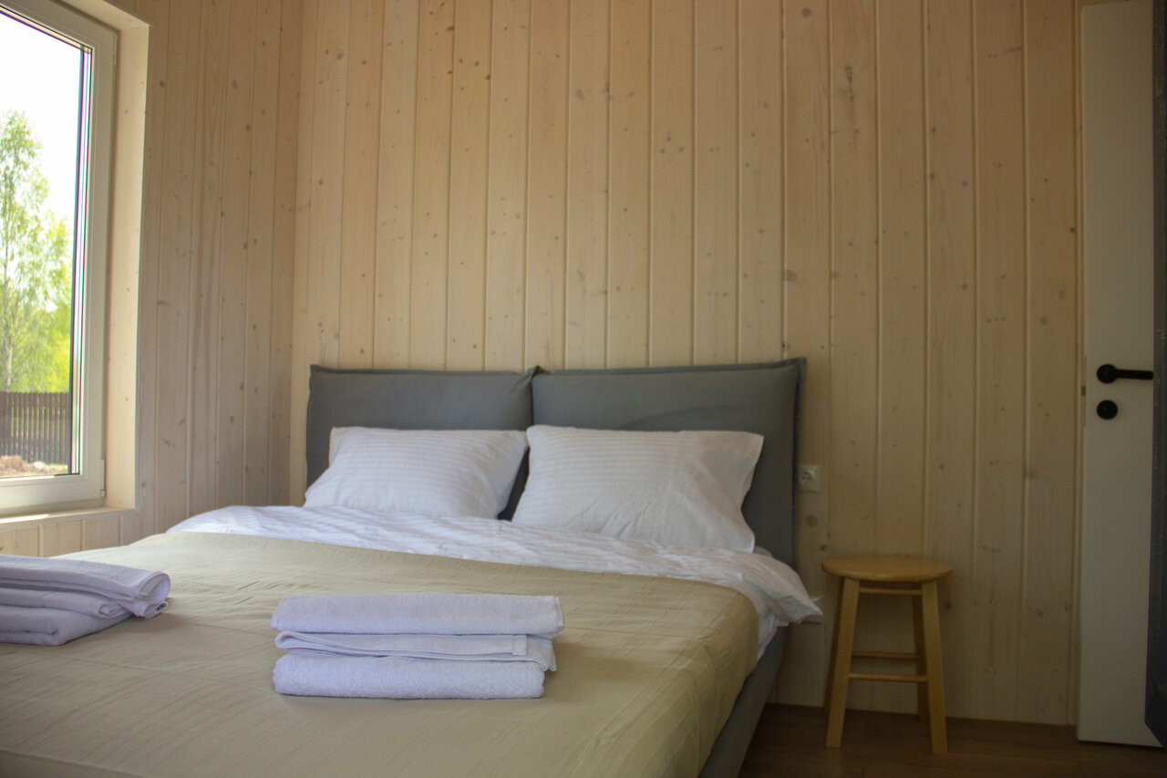 Прекрасное место для души, красивая природа , уютные и чистые домики. Пахло деревом. Посуда, столы , постельное все было предусмотрено. На улице место для костра, стол, специальные стулья. Домики очень светлые с панорамными стеклами. Отдыхали компанией с детьми. Совсем рядом Речка и лес. В минут 10 езды загородный клуб с банями, ресторанами и конюшней. Прекрасное озеро с песчаным берегом, уютный ресторан около пруда с лебедями. Хочу вернуться туда снова со своими родными. Это был незабываемый отдых . Спасибо хозяевам за это душевное место для релакса