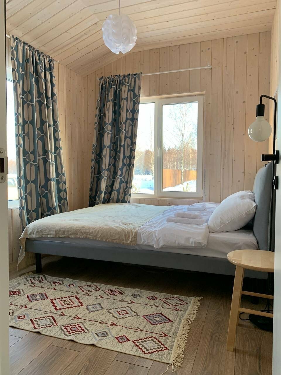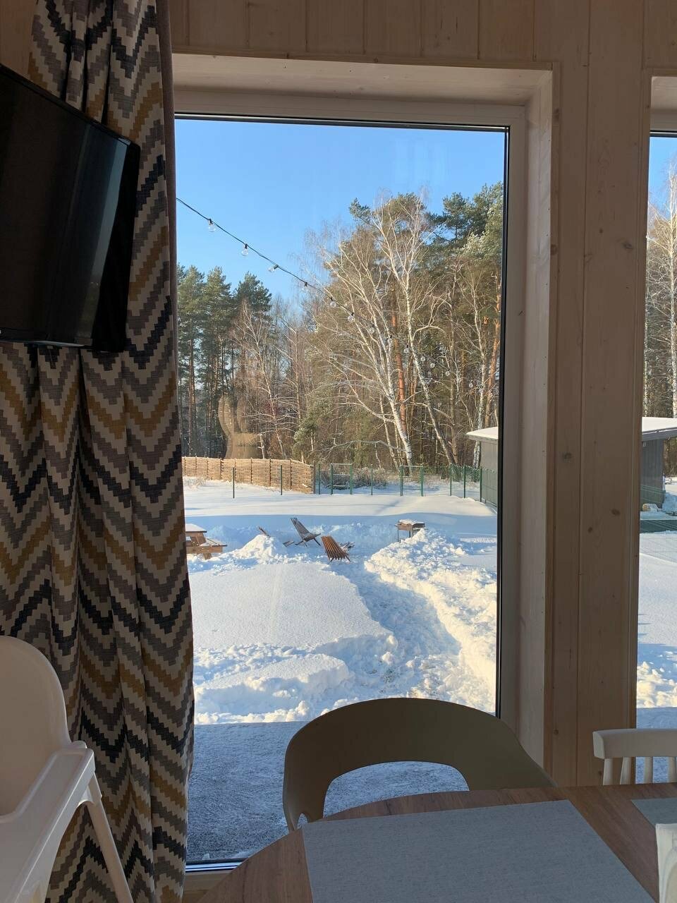 Лучшие домики в которых мы бывали. Очень приятно просыпаться с видом на лес. Много спальных мест и всё необходимое для отдыха есть в доме. Шикарная инфраструктура вокруг поселка.