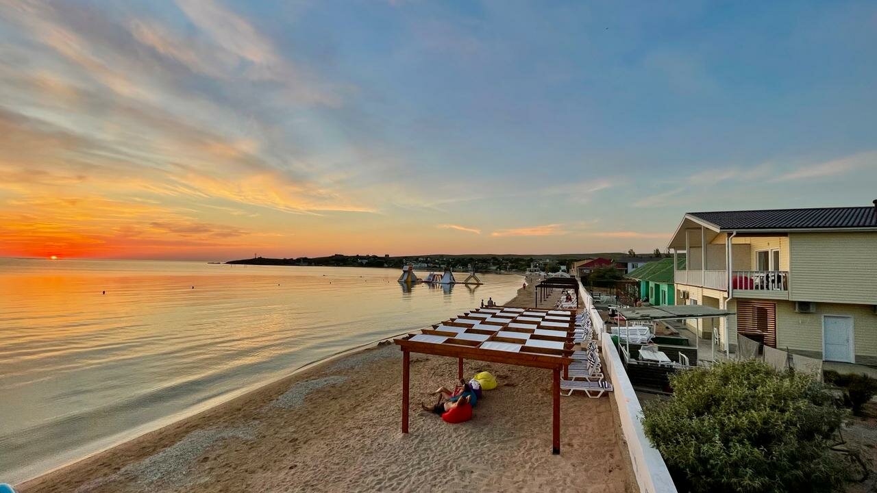 Отличный отель на берегу Азовского моря в 20 метрах от пляжа- если говорить про первую линию, пляж оборудован лежаками и перголами с мягкими подстилочками, что выделяет среди соседей, море мелкое очень хорошо подойдёт для отдых с детками, утонуть практически невозможно. Локация действительно хорошая в это месте, на пляже есть станция K-beach ( с большим разнообразием морских развлечений) серый, сапы, гидроциклы катера. В августе много медуз которые жалят.