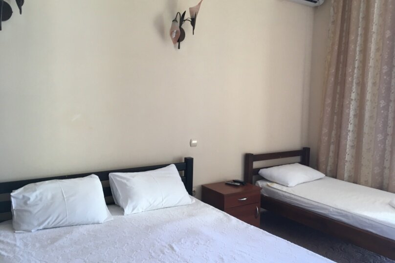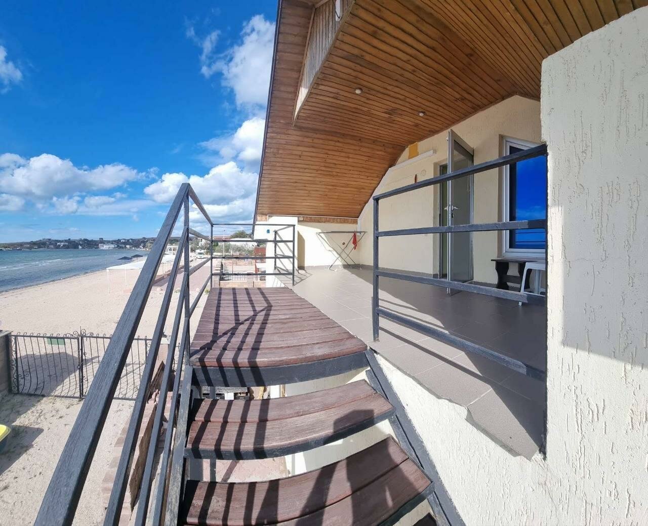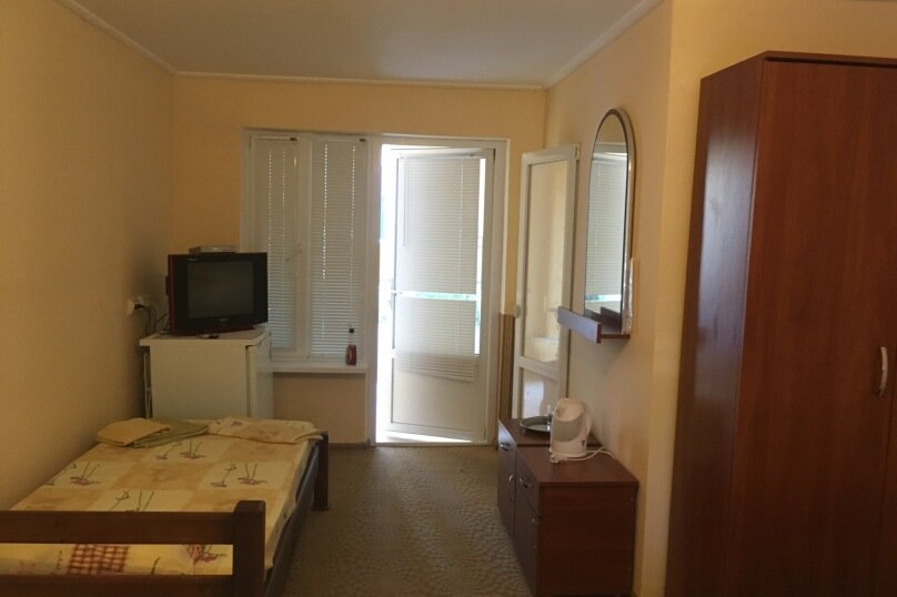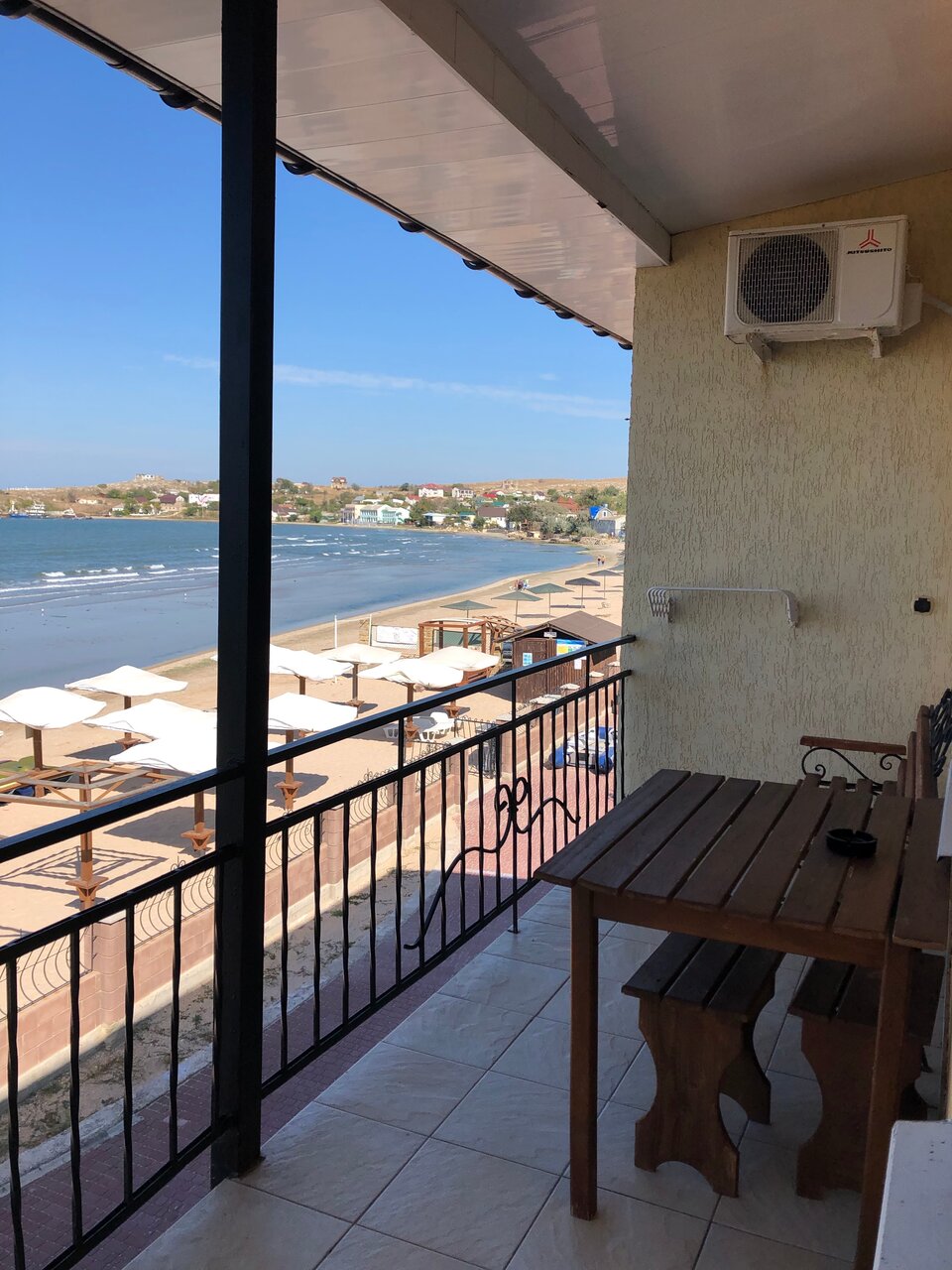 Обалденное место, до моря 10 метров. Свой пляж, свои лежаки и зонтики. Людей не много, хотя и август месяц. Песочек и теплое море. Тихое место для комфортного отдыха. Советую на 100%. Если ещё раз поеду, то обязательно на недельку туда заеду. На фото я стою в 3 метрах от двери номера.