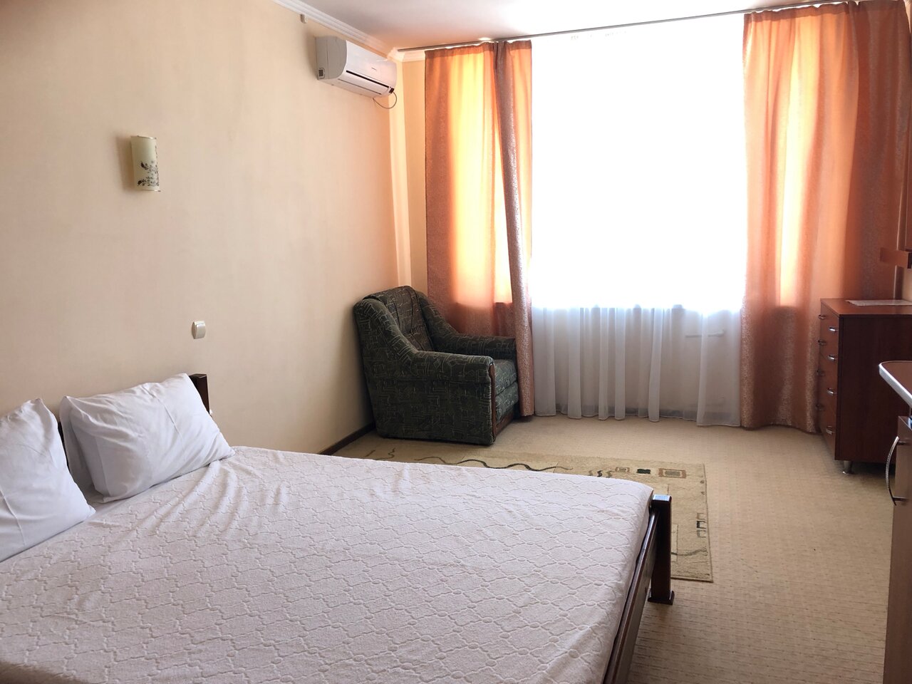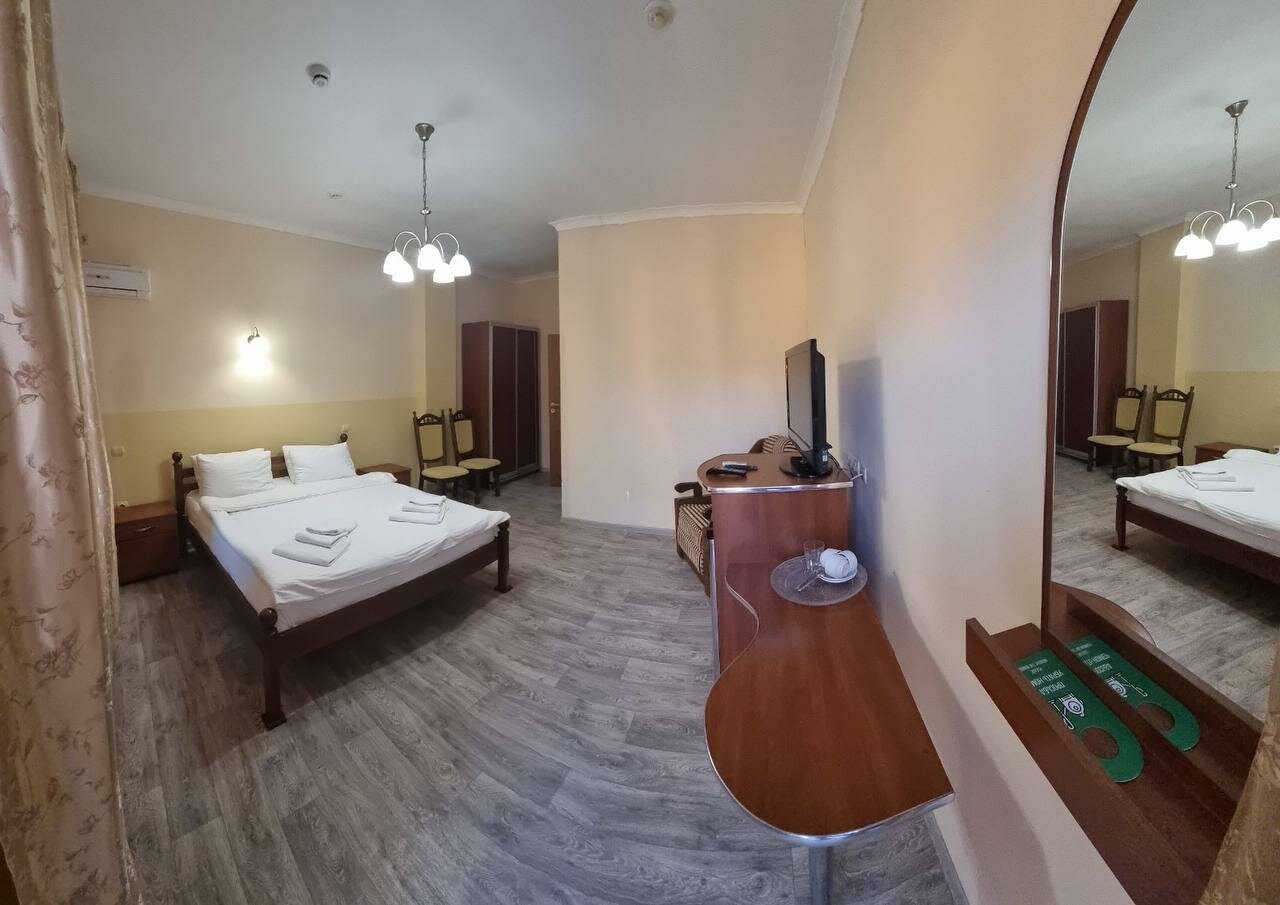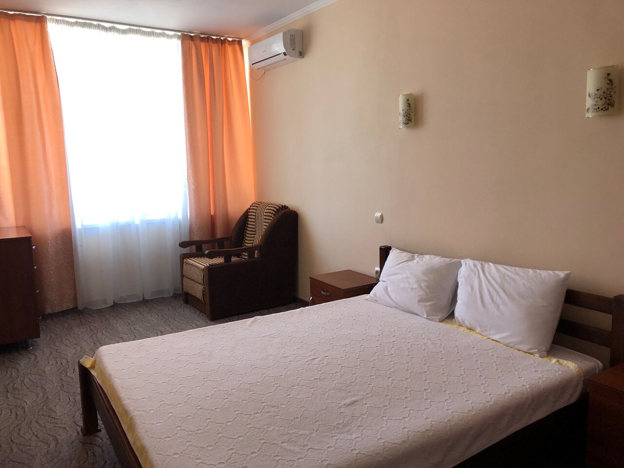 Отдыхали семьей. Очень приветливый и вежливый персонал. Номер убирали каждый день, очень чисто. Спасибо большое. Мы брали номер двухкомнатный люкс на втором этаже с видом на море. Вид красивый, шум волн и закаты-великолепны. Балкон большой. Пляж чистый и море. В кафе готовят очень вкусно. Отдельное спасибо персоналу в кафе. Но есть минусы, которые, думаю можно исправить. Детская площадка никакая. И ручки дверей на ладан дышат. А так всё хорошо. Спасибо большое. Удачи Вам!!!