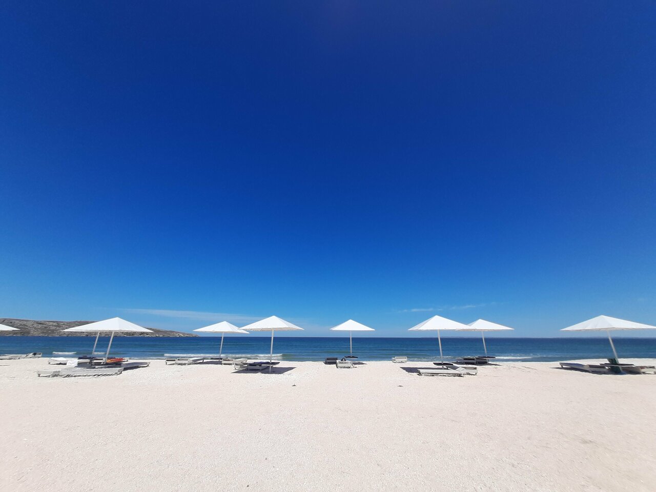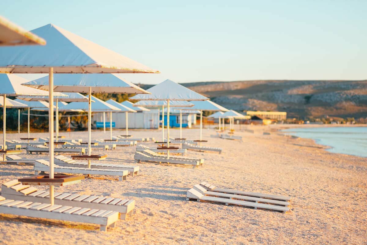 - Чистый пляж с зонтиками и шезлонгами.