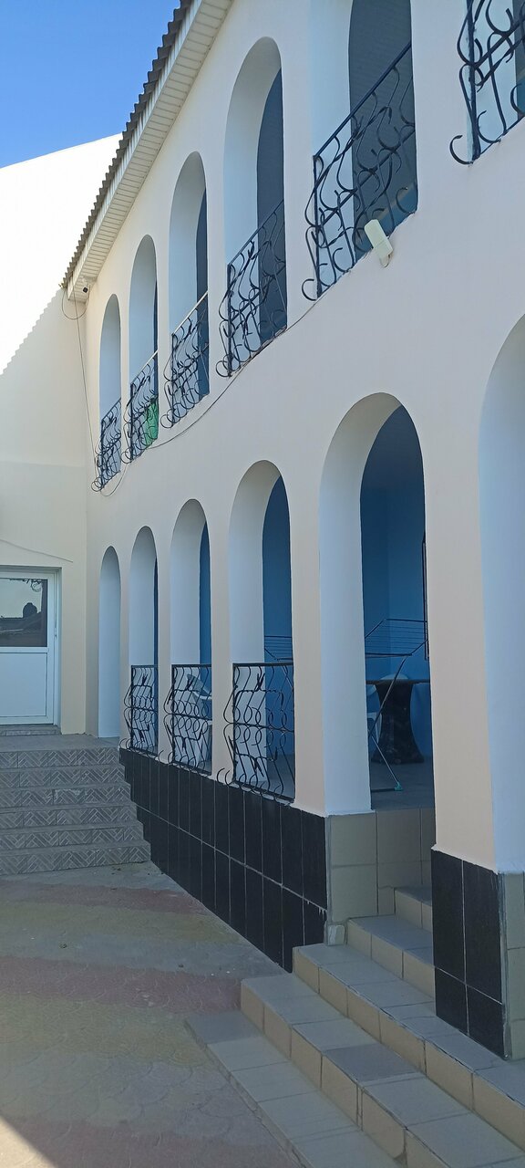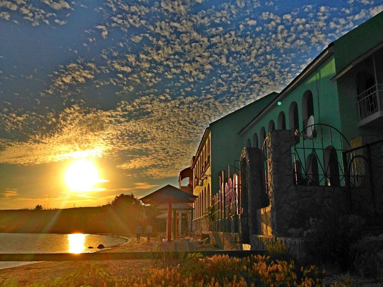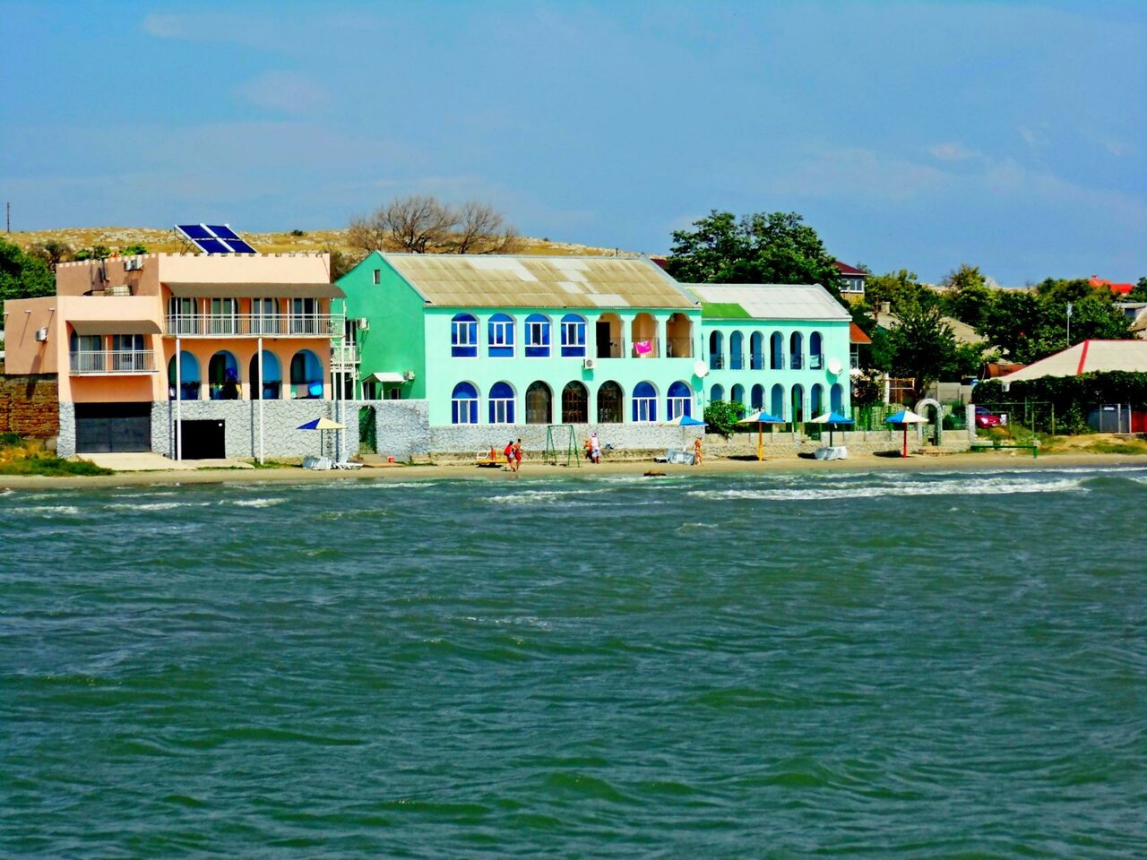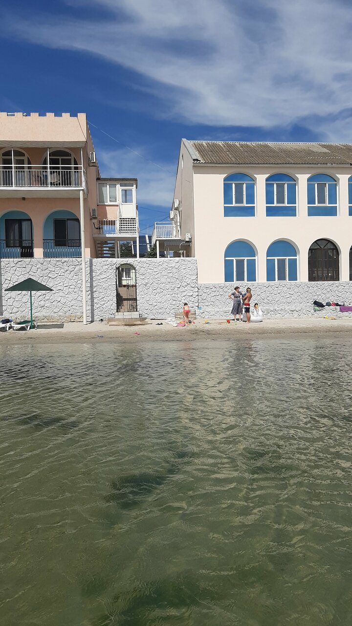 Гостиница прям на берегу моря. Вид из номера супер, море прям у ног. Кто любит отдыхать на Азовском море, с детьми супер, море не глубокое. Мы остановились на сутки, с погодой не очень повезло, штормило, медуз было много( конец августа). Но, в целом, хорошо !