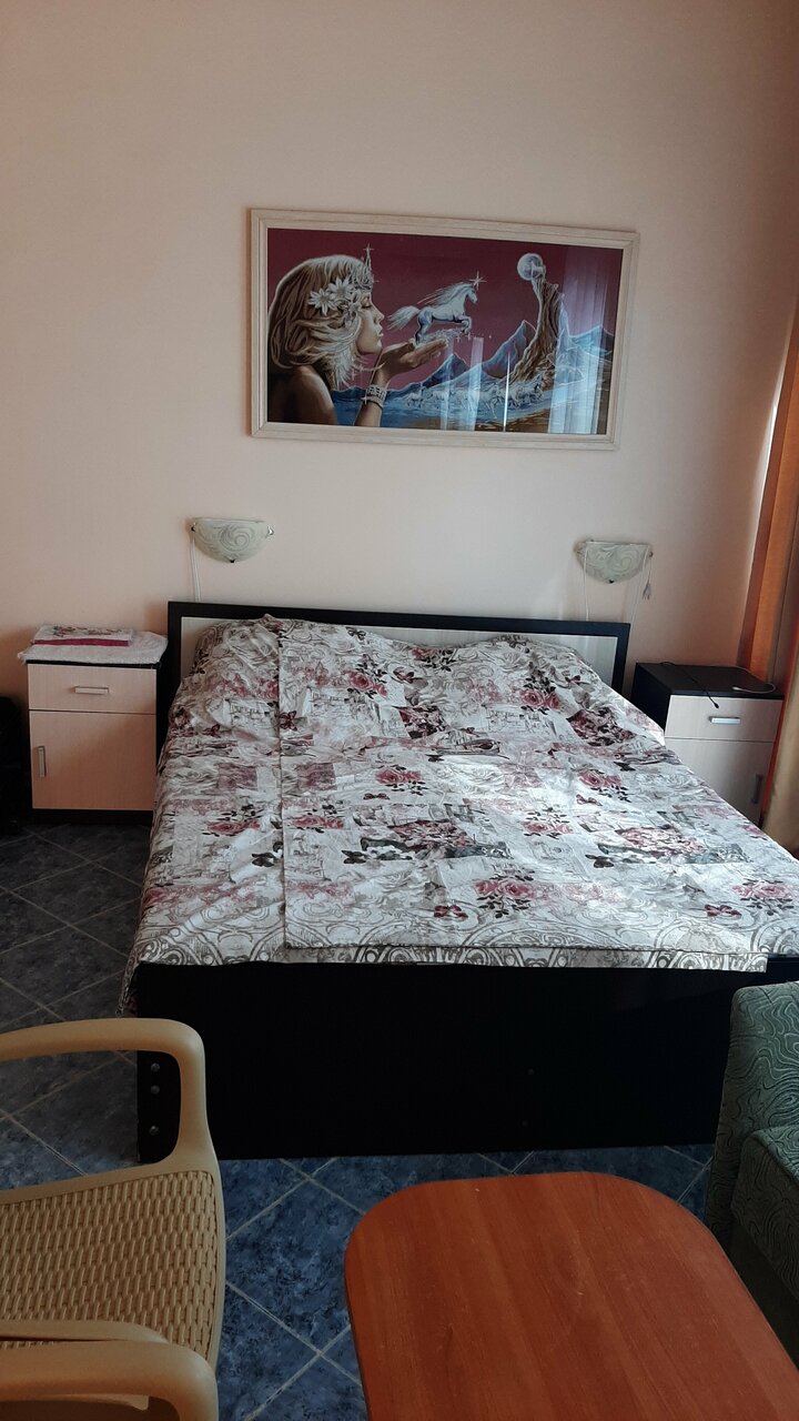 Все отлично Елена встретила меня ночью и любезно согласились принять. Объяснила как проехать до места, всё показала и разместила в номере. В номере ТВ, холодильник, кондиционер и мебель, имеются также полотенца. Место очень хорошее, море прям из калитки. Территория очень ухоженная и приятная, имеются даже попугайчики))