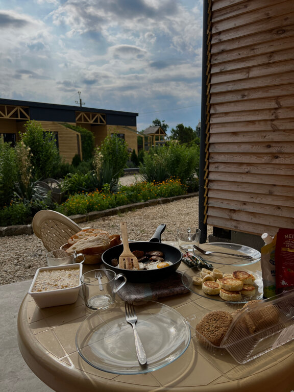Прекрасная база отдыха! Чистые и свежие домики, комфортная внутренняя территория. Есть мангал, гамак, теннисный стол, стол и стулья! Персонал вежливый и отзывчивый! Было очень приятно остановиться в этом месте!