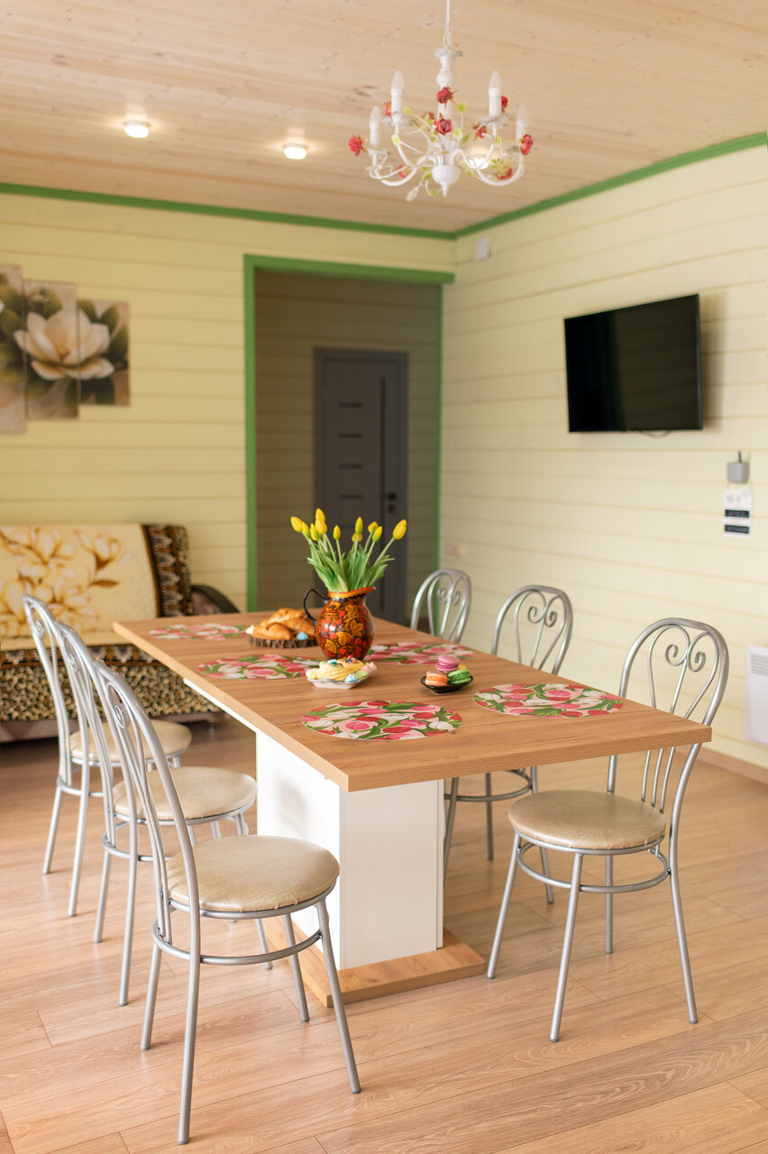 Условия: — Заезд — с 14:00, выезд — до 12:00. — Бесплатная парковка и интернет на всей территории.