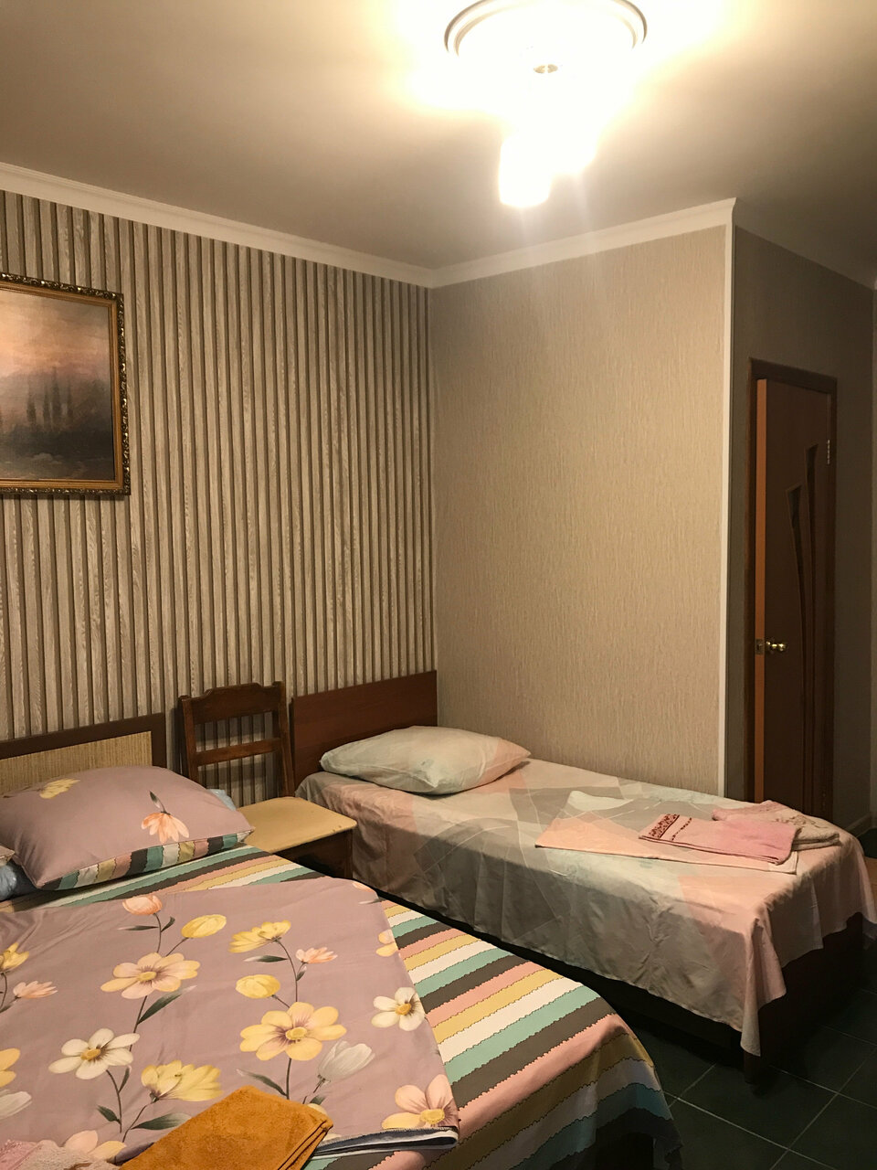 Дороговато конечно, но в отличие от других, есть все: туалет, душ, телевизор.. В номере чисто, было тихо. А самое главное, я сначала забронировала номер, потом поездка сорвалась, и хозяин 100% вернул деньги, ничего не удержал. Это большая редкость и отдельное спасибо.. Рекомендую.