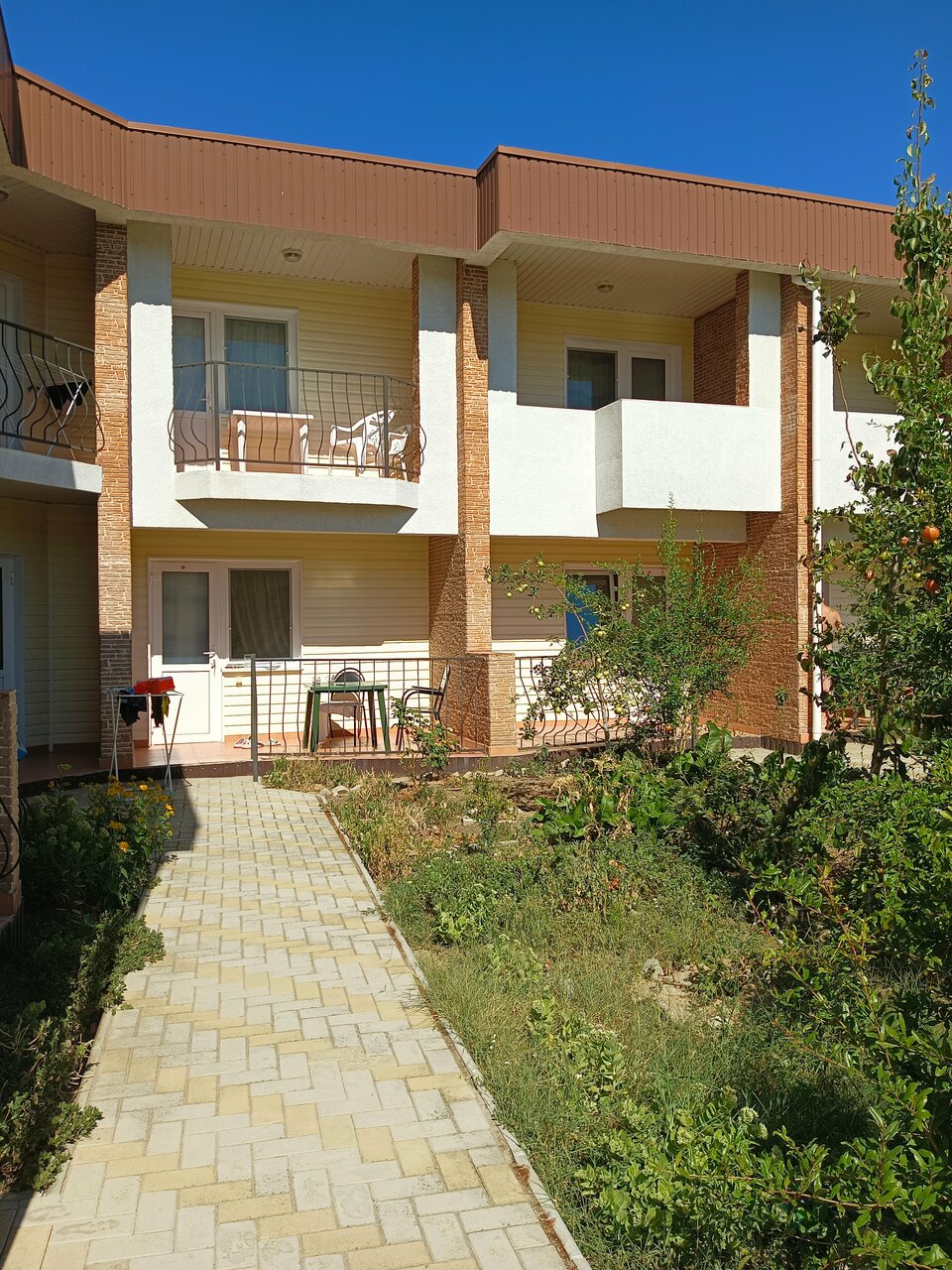 Неплохой гостевой дом у моря если остановиться на пару, тройку дней. Номера чистые, мебель новая. Большой плюс это близость моря- перешёл дорожку и ты на пляже тёплого, Азовского моря. Из минусов это плохая вентиляция в номерах (душ и туалет) и нехватает чайников в номерах ибо общая кухня маловата для такого количества номеров. Мы были в сентябре и то тесновато. Но! Можно заказать у хозяйки завтрак и ужин за отдельную, приемлемую плату. Остались довольны остановкой.