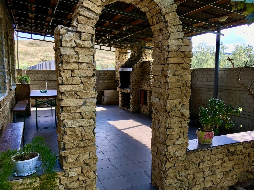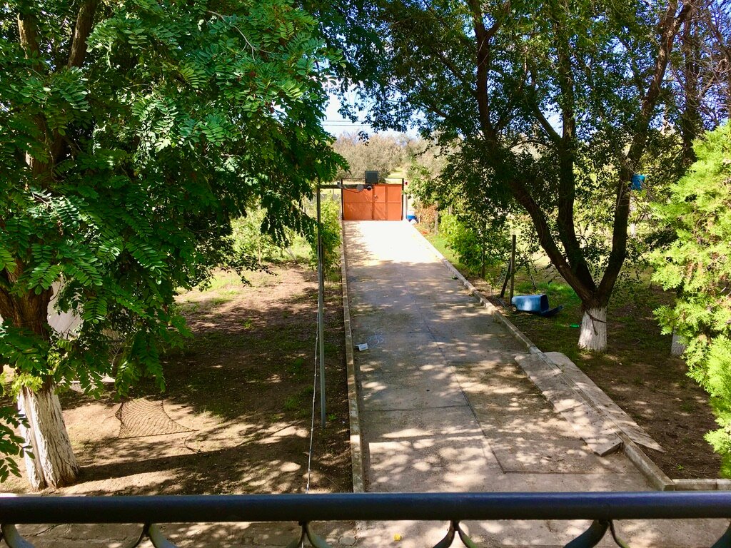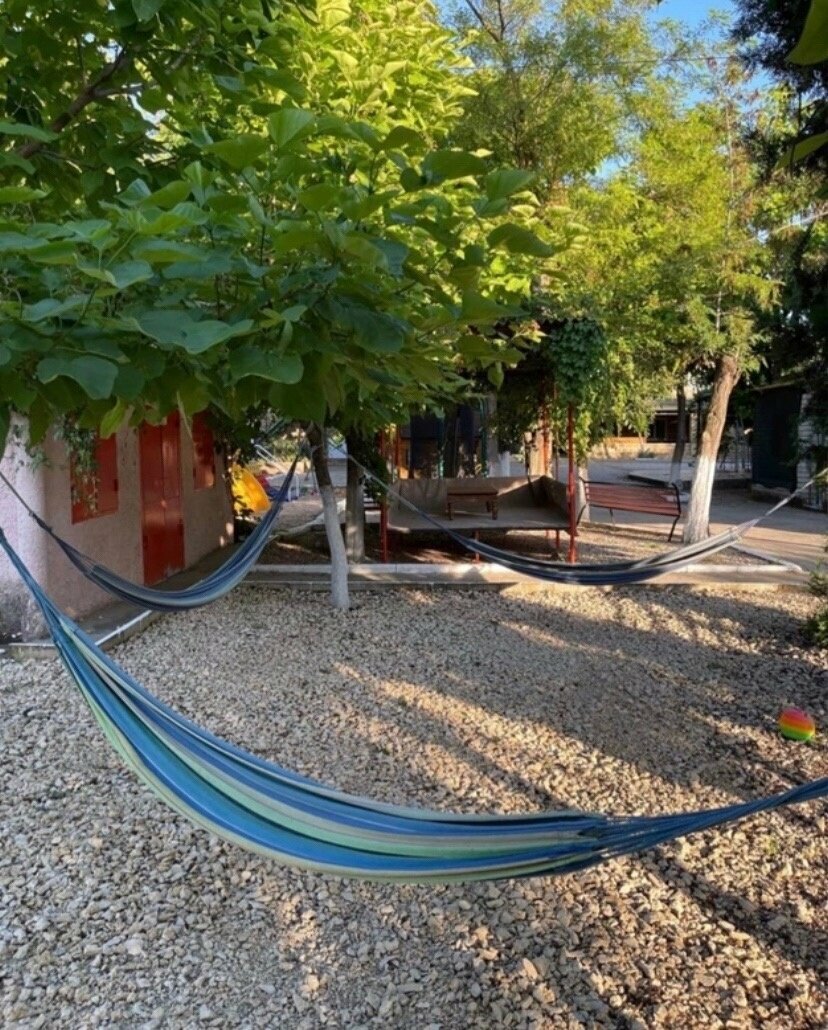 Частное домовладение в центре села новоотрадное, огромный участок с парковкой внутри. Есть отдельная огромная кухня со всем необходимым (кроме чайника). Отдельные детские игровые зоны и даже маленькая детская площадка с горками, бассейны для детей, большая шашлычная зона, сами номера стоят отдельной постройкой, есть как номера стандарт так и делюкс. Вцелом — это очень гостеприимный частный дом со всеми условиями для вашего отдыха и ваших детей по адекватным ценам(немаловажно) и наличием всех условий нежели соседние гостишки и дикарь-отели которые я все перелистал в округе. Пляж в пяти минутах ходьбы, достаточно огромный и малолюдный даже в воскресенье, вода чистая. Для гостей сразу отмечу — провизию в виде пресной воды, угля, еды — лучше взять по пути в Керчи и не забываем что мы в гостях у этой замечательной семьи) забронировал номер через Екатерину по ватсапу, с ней обсудил все вопросы сполна) спасибо им за тёплый приём.