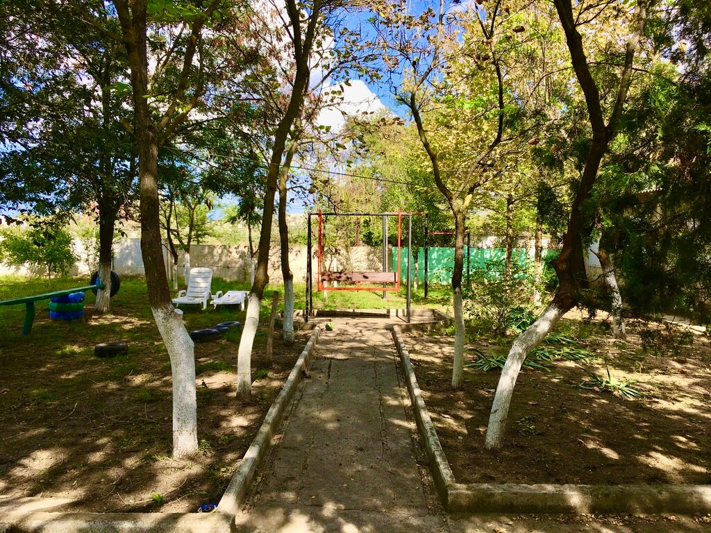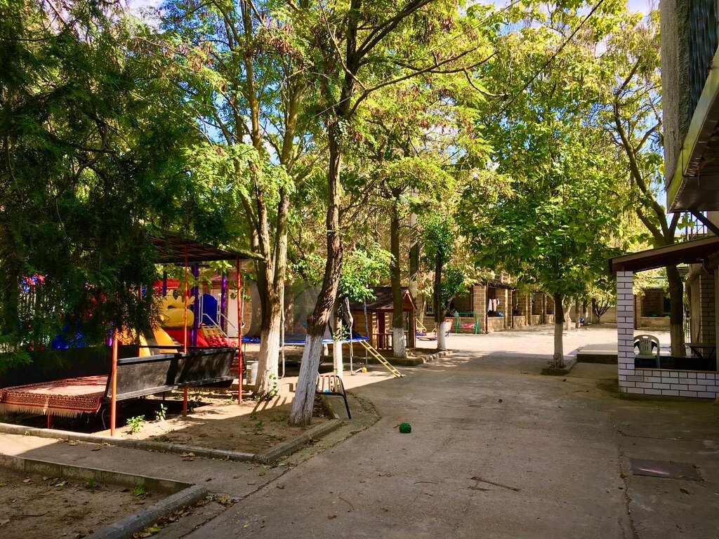 Пансионат, то что надо! Просторные номера, кондиционеры, детская площадка. До моря около 500 метров, правда надо переходить дорогу, но движение на ней не оживлённое. Общая кухня, с оборудованием, посудой, приборами, холодильниками и всем что необходимо! Приемлемые цены за ночь. Отдыхали большой компанией, все остались довольны)