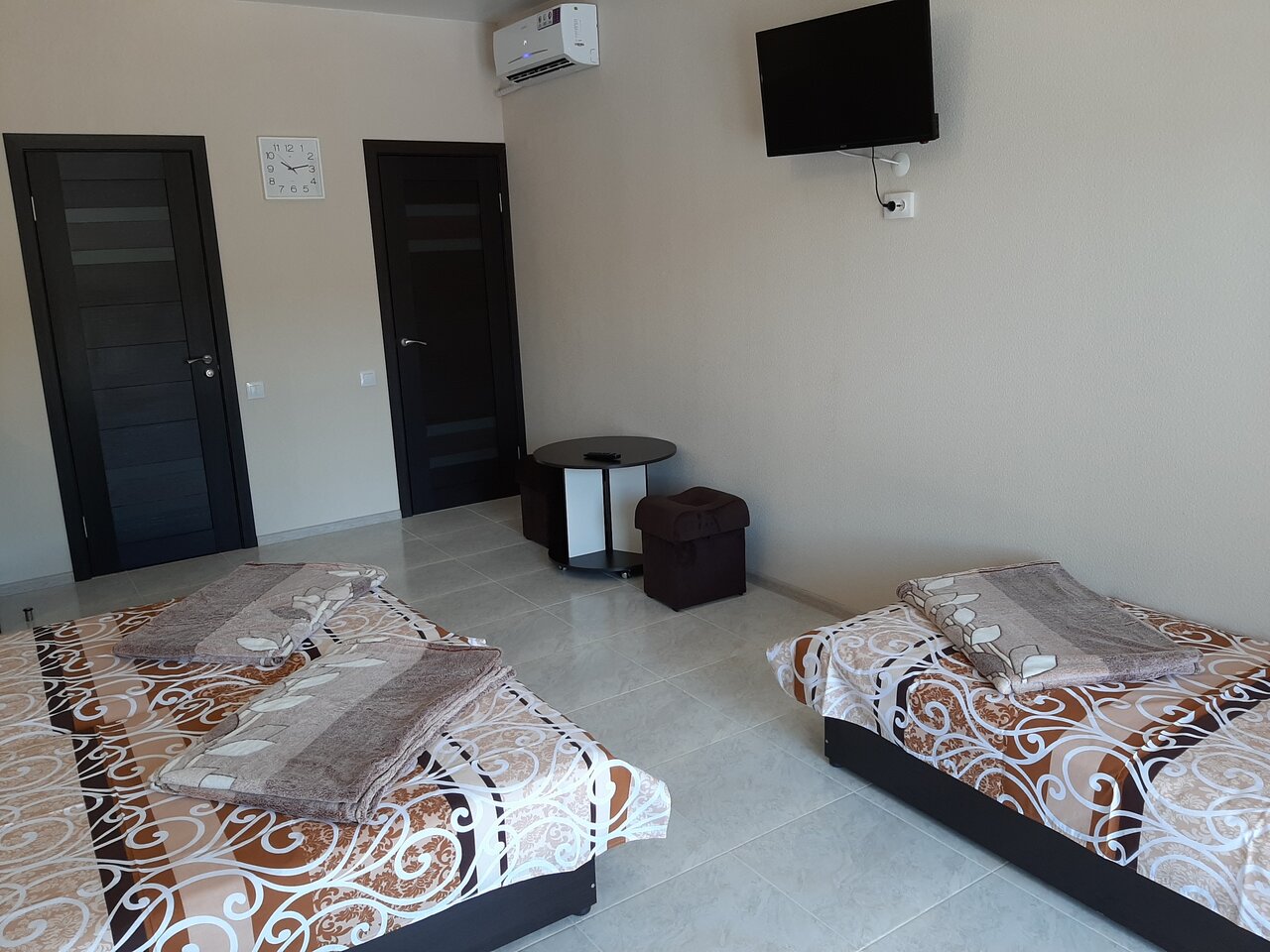 Отдыхали еще в августе. Очень понравилось. Хозяин добрый и приветливый и весь персонал так же. Номера чистые, постельное белье постиранное. Также хочется подметить удачное местоположение. Вокруг горы,а через пару метров открывается прекрасный вид на Азовское море.