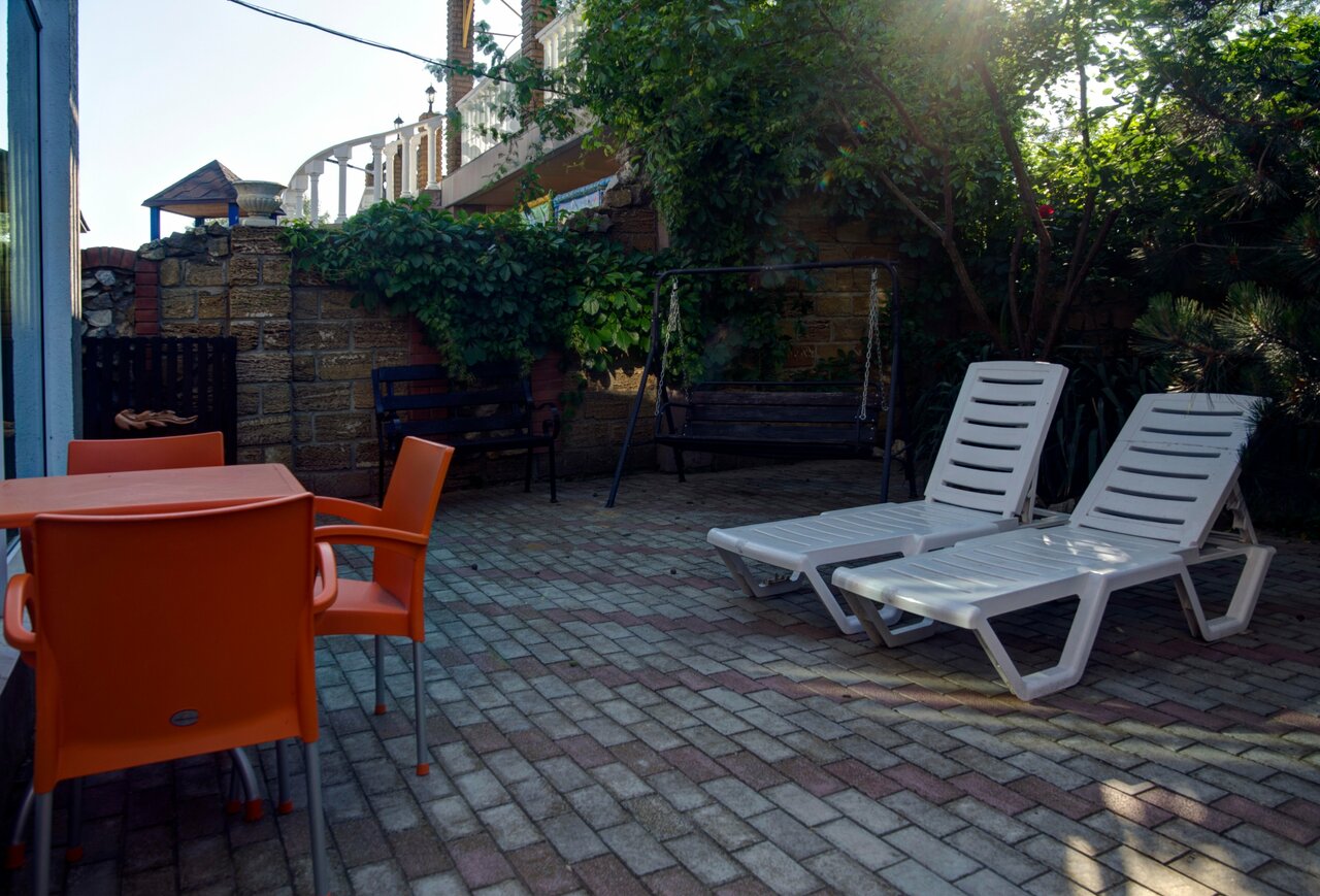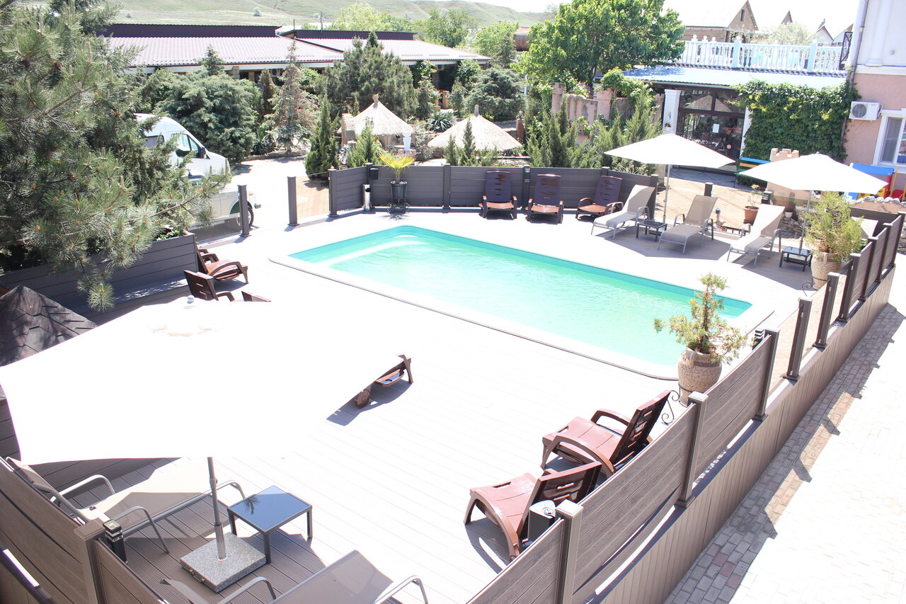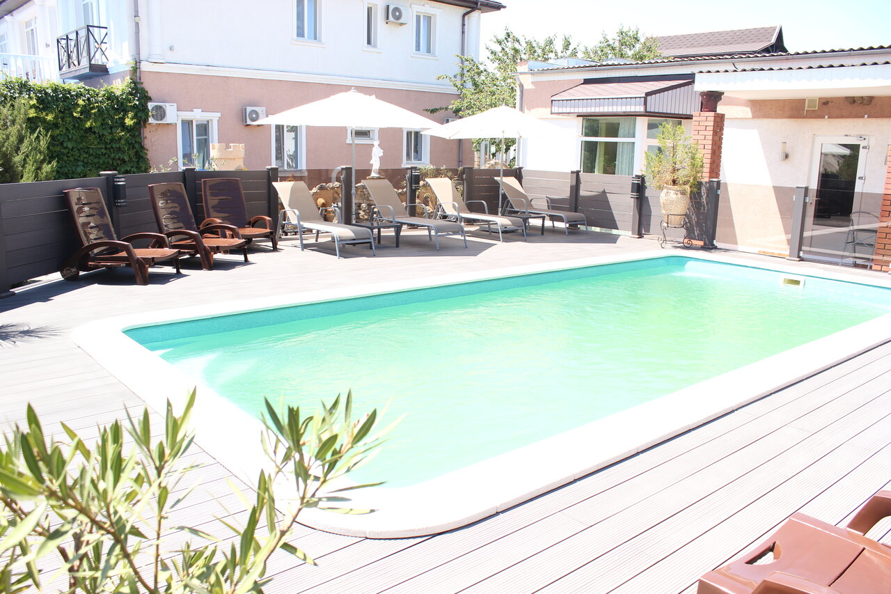 Плюсы: красивая ухоженная территория, много зелени и мест для отдыха (бассейн, игровая, мангальная). Уютные номера. Близко от пляжа. Минусы: не понравилось отношение хозяев, равнодушие полное. Смены ванных принадлежностей нет — нужно было срочно разживаться самим и искать магазин. В номерах не убирались. По еде не понравились сырники — полусырые.
