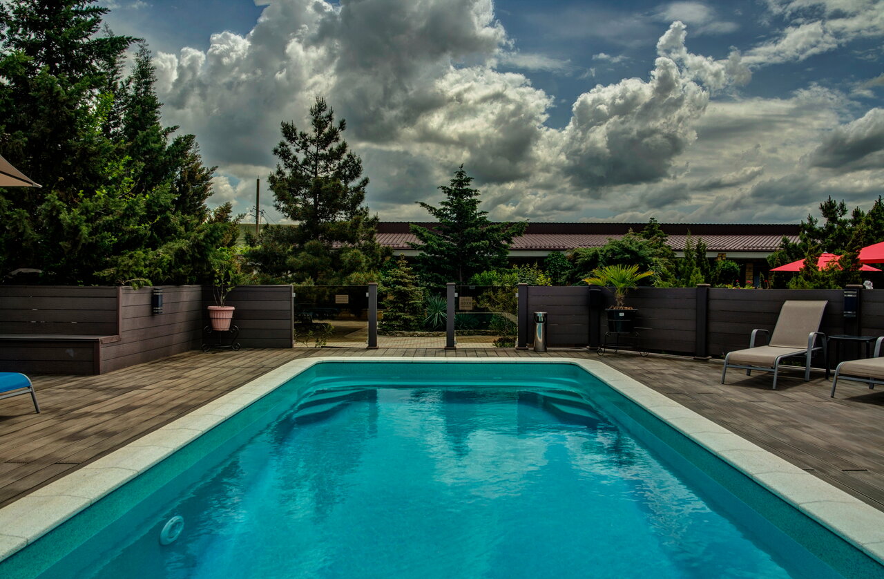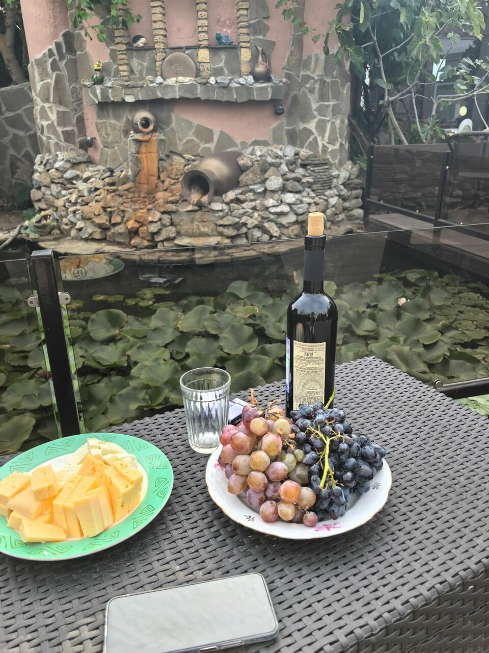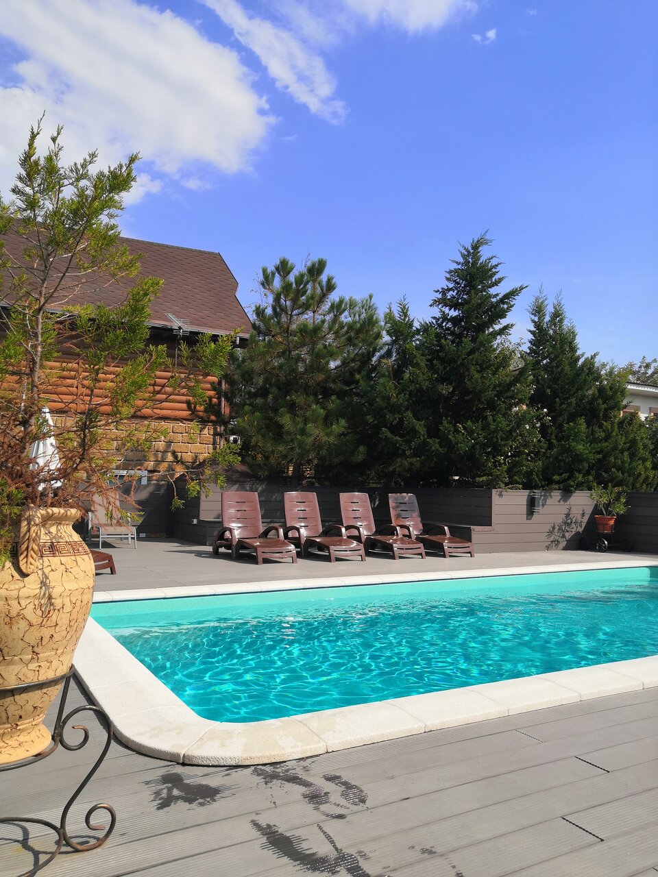 Плюсы: красивая ухоженная территория, много зелени и мест для отдыха (бассейн, игровая, мангальная). Уютные номера. Близко от пляжа. Минусы: не понравилось отношение хозяев, равнодушие полное. Смены ванных принадлежностей нет — нужно было срочно разживаться самим и искать магазин. В номерах не убирались. По еде не понравились сырники — полусырые.