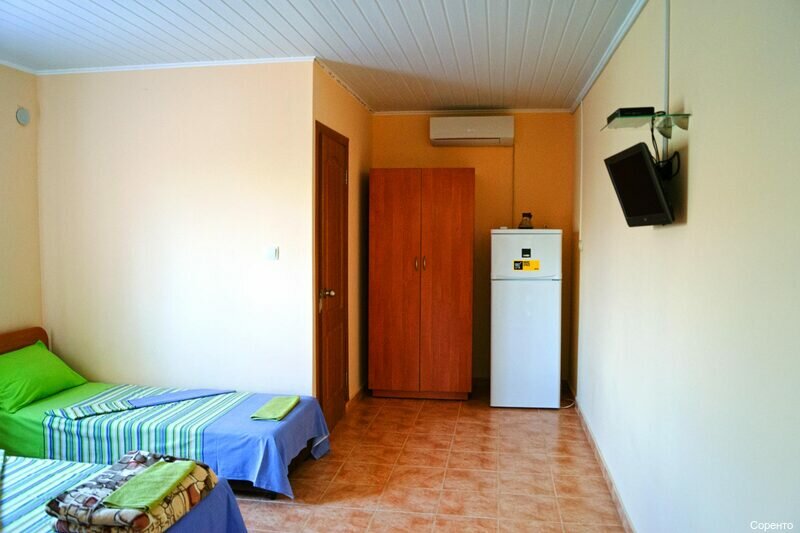 Отличный вариант для семейного отдыха на Казантипском заливе, комфортные номера с санузлом в номере и кондиционером (телевизор тоже есть но я его и дома не смотрю), если прогуляться по поселку можно найти где вкусно покушать или купить свежих овощей и фруктов. Отличный широкий песчаный пляж в минуте может двух пешком. Управляющий очень душевный молодой человек, подсказал места куда можно съездить когда пришлось отказаться на несколько дней от загара на пляже в пользу прибывания как минимум в тени… Оч советую, не первый раз в Новоотрадном есть с чем сравнить.