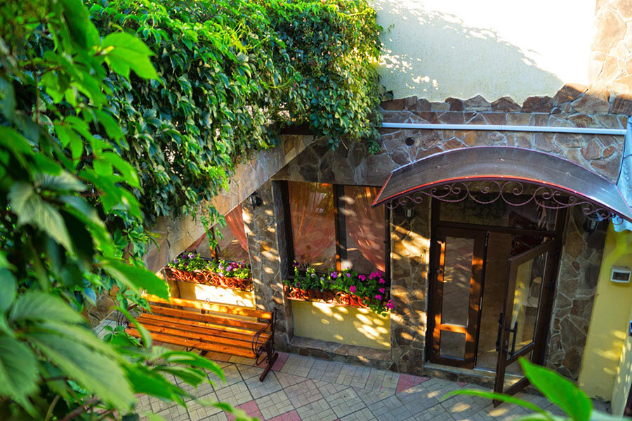 - Чистота и ухоженность территории.; Вкусное питание (завтраки, обеды, ужины).; Просторные номера с удобствами.; Уютные и комфортные номера.; Красивый двор (зелень, виноград, итальянский стиль).