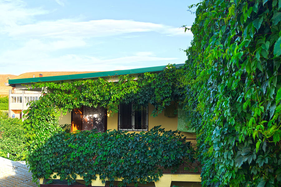 - Красивый двор (зелень, виноград, итальянский стиль).