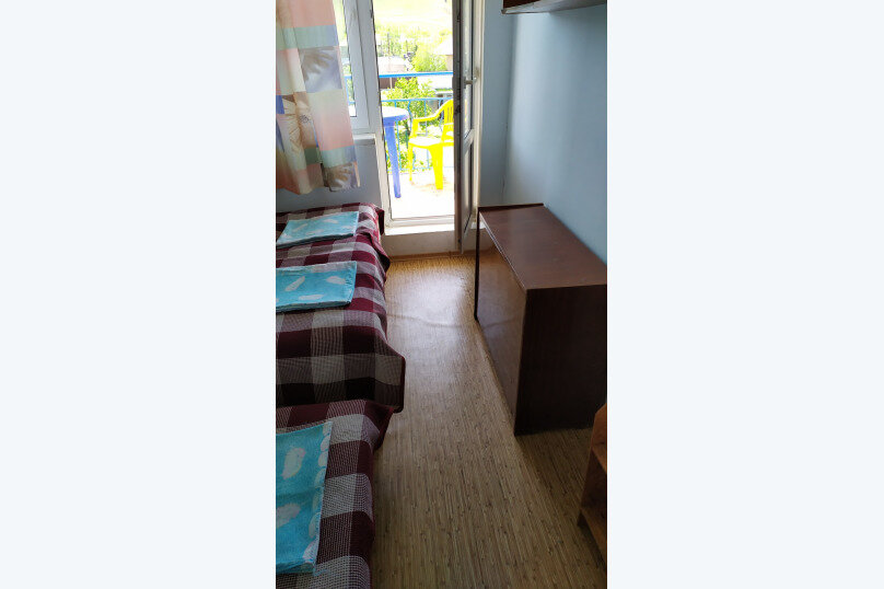 Отличное место для тихого отдыха! Можно даже со своим питомцем есть отличная беседка для компании, мангал, большая общая кухня, душ, кондиционер, в номебе огромный балкон зетененнный зеленью. В общем тихий живой уголок в 3 минутах от моря .