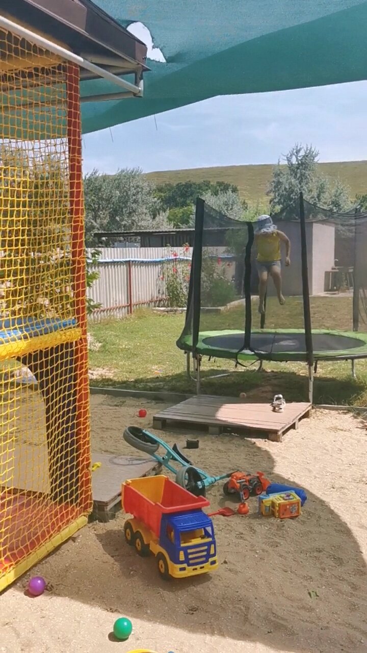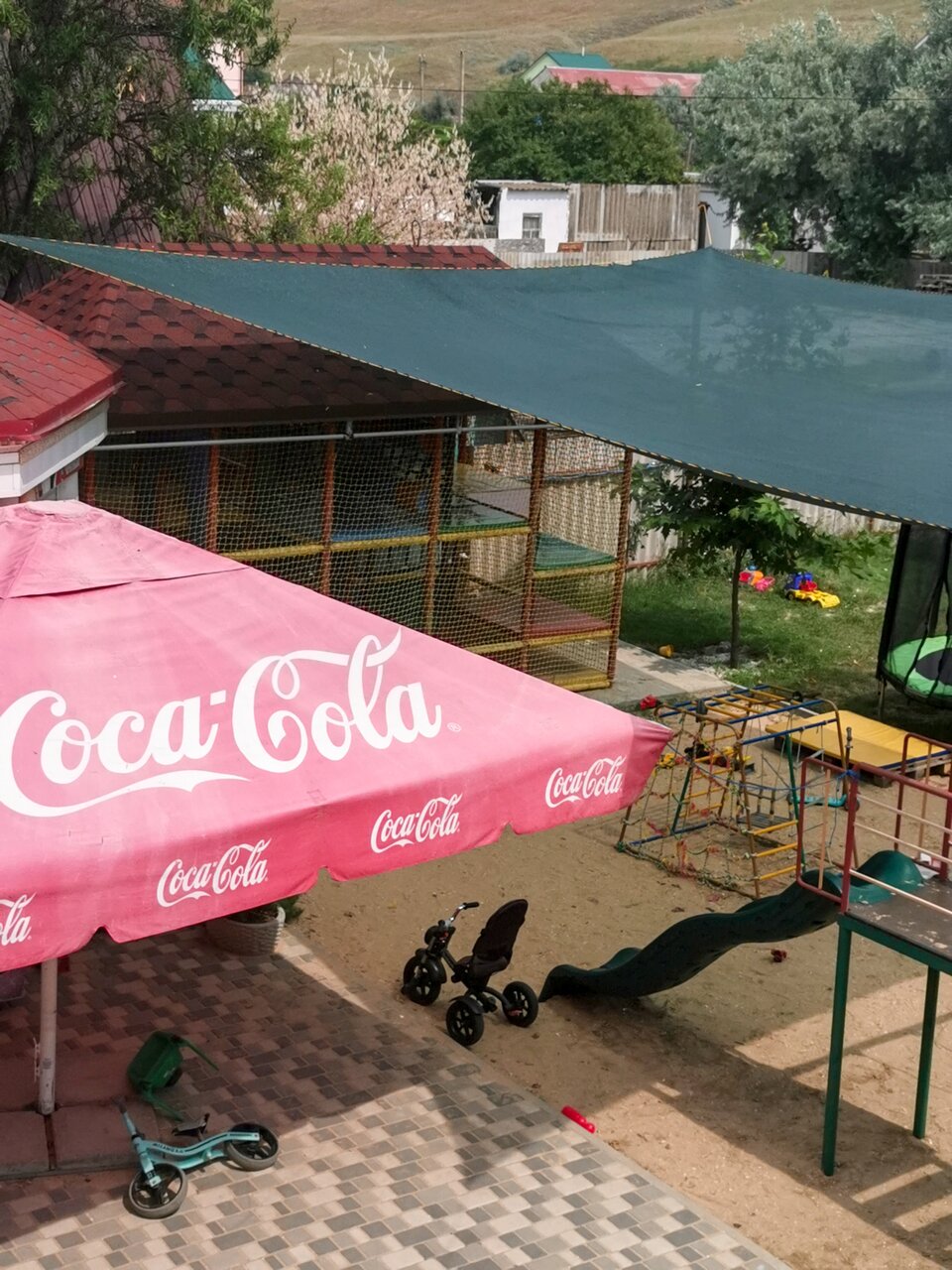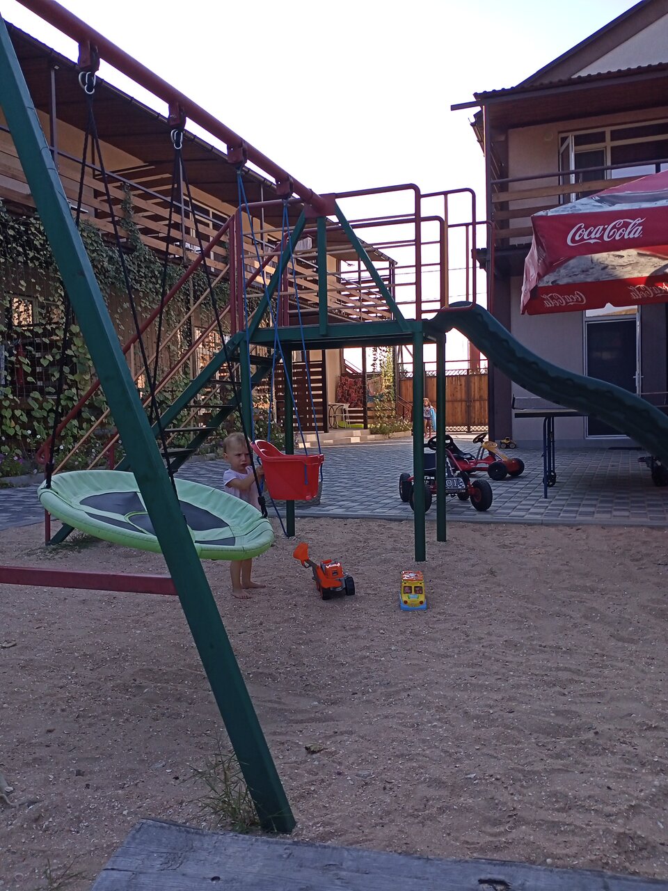 - Детская площадка с горками, батутом и игрушками.