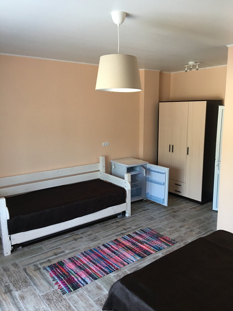 Тихий семейный отдых! Были в двухуровневом номере, 5 мест, 2 телевизора, 2 с/у,2 кондиционера, душ,холодильник,большой балкон. Кухня общая, детская площадка. Все очень чистенько .Понравилось, рекомендую для отдыха с детьми.
