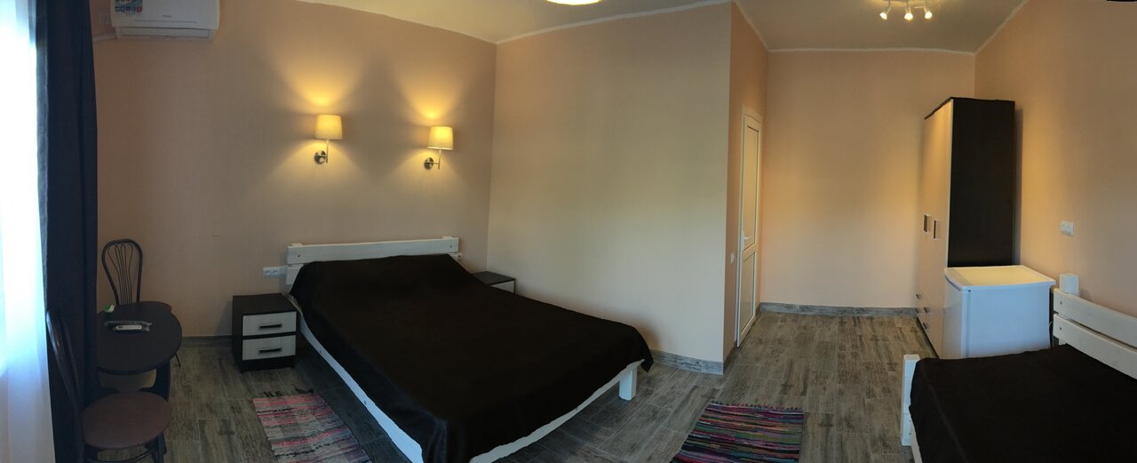 Отличное место))) Номер большой, комфортный!!! В наличие вся необходимая мебель и техника!!!!! Территория красивая, ухоженая, все цветет и пахнет!!! В вечернее время территория подсвечивется фонорями, добавляя романтики в вечерний досуг! Особенно нам понравилась летняя площадка,где можно пожарить шашлыки либо просто весело провести время!!! А тем временем детки могут играть рядом на детской площадки, у которой очень удачное расположение! Вроде отдыхаете с компанией, но дети всегда на виду!! Обязательно приедем еще, это место покорила прекрасным пляжем и тишиной!! Отличный вариант отдыха с детьми от шумного города! Рекомендуем!!!